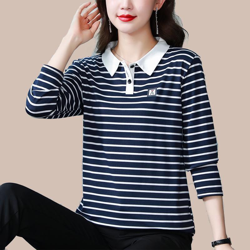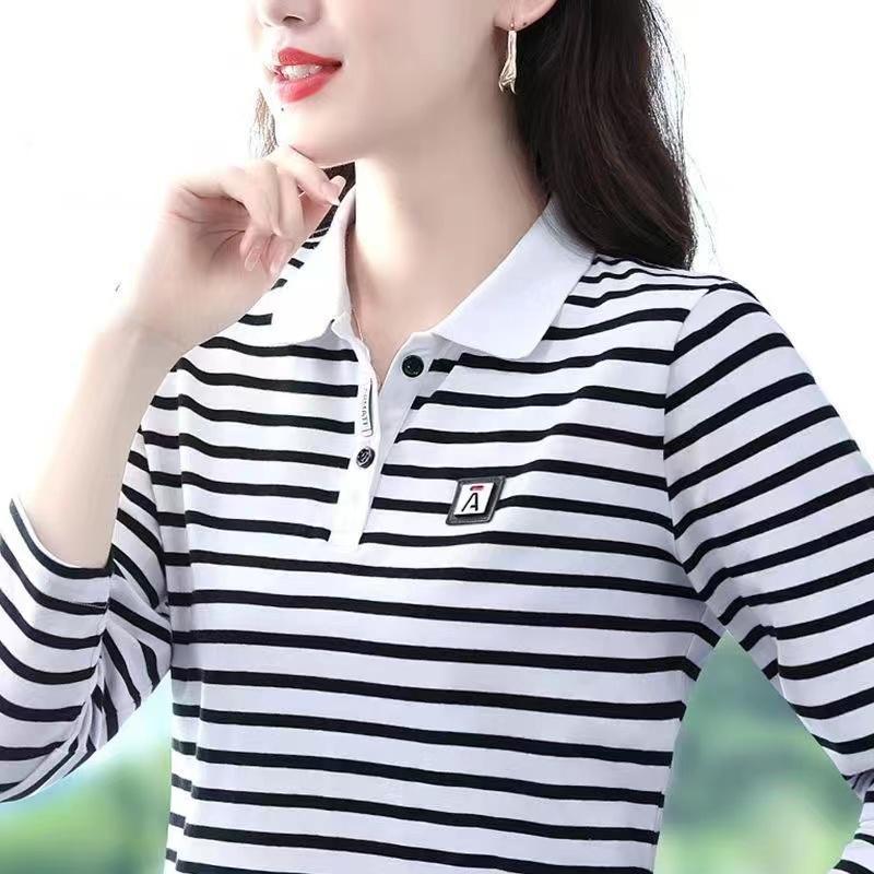| nameOriginal | Autumn Striped New Long-sleeved 2024 Fashion Polo Shirt Women's Belly Covering Meat Mother's All-match Top Base Shirt |