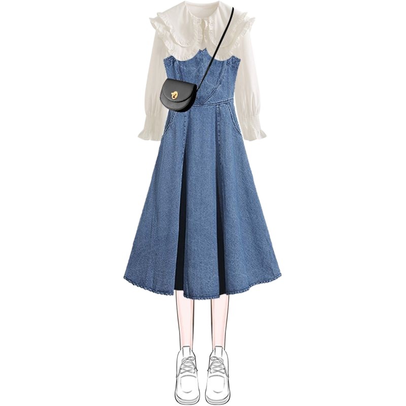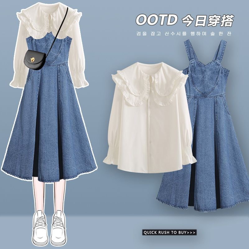 | nameOriginal | Autumn suit Women's New plus size Women's Fashion Doll Collar Petal Sleeve Polyester Strap dress Two-piece Set |