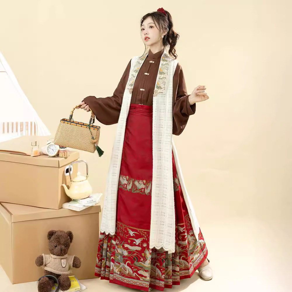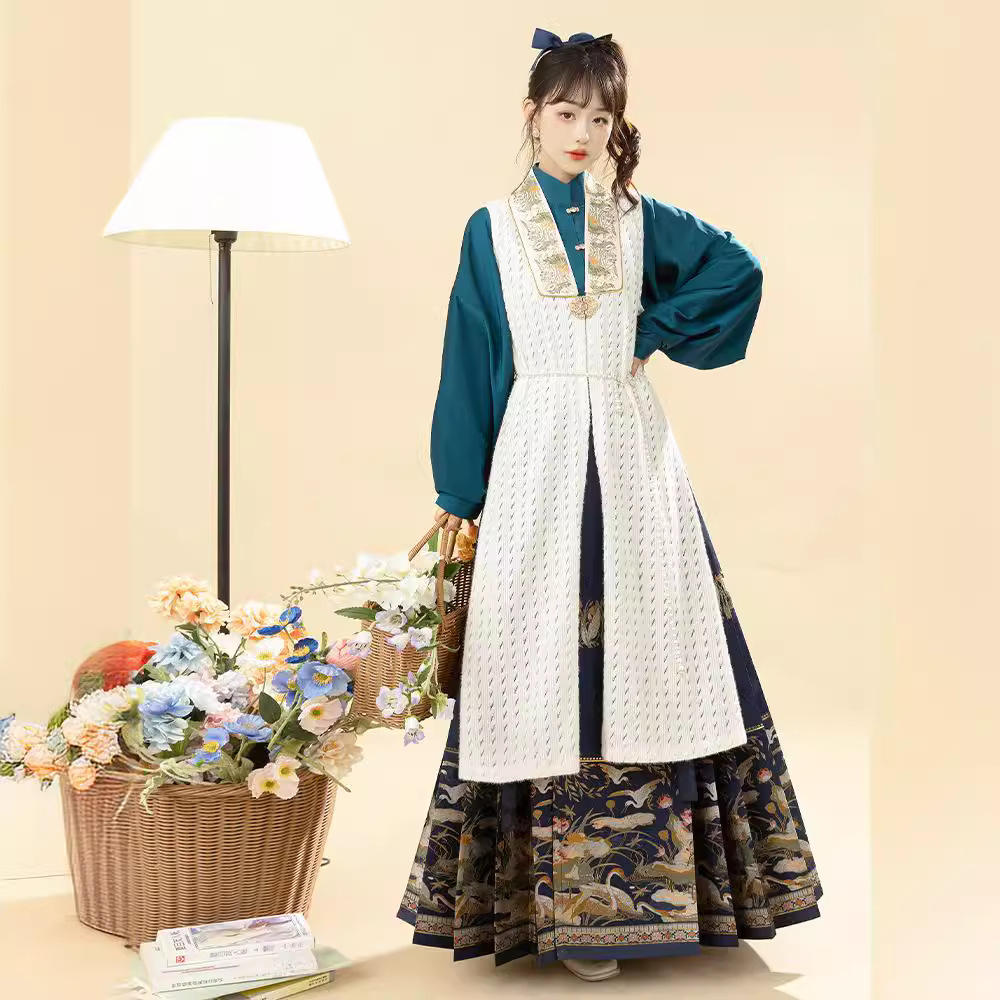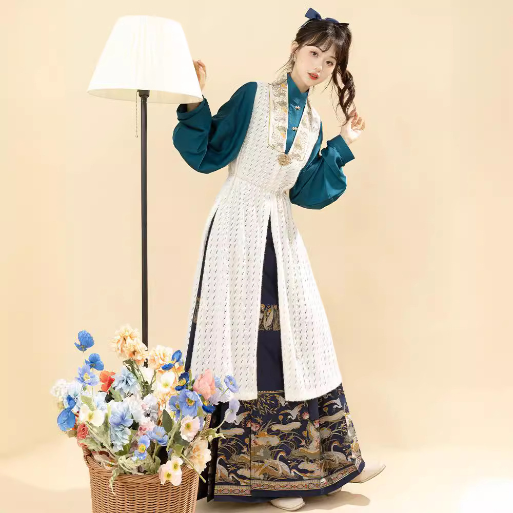 | nameOriginal | Autumn sun song Spring New woven gold makeup flower New Chinese modified suit Ming small Hanfu vest skirt |