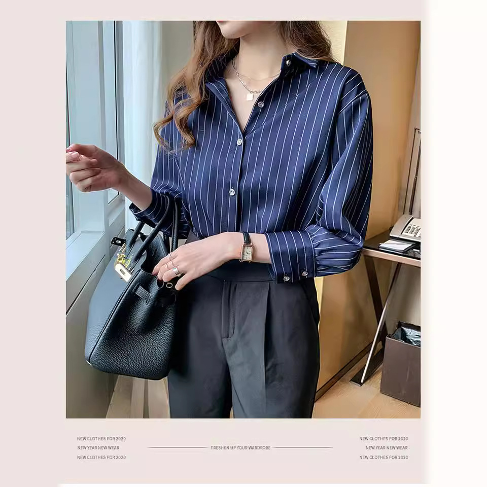 | nameOriginal | Autumn women's clothing niche top retro Hong Kong style white striped shirt design light familiar stacked shirt |