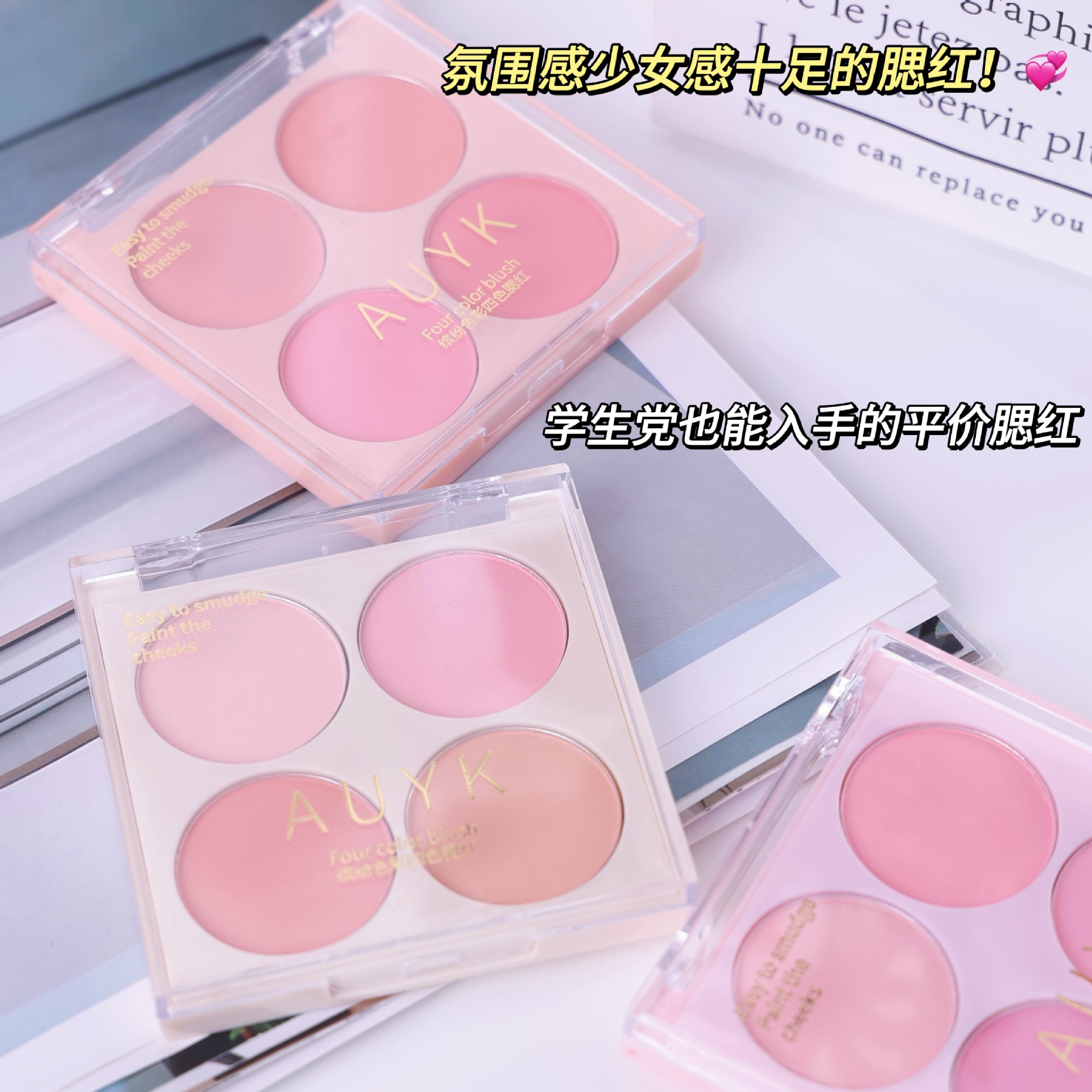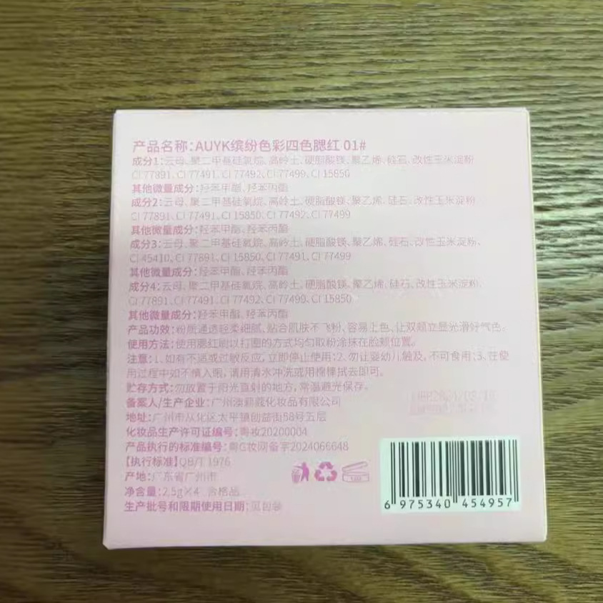 AUYK Colorful Four-color Blush White Natural Naked Makeup Color Display Plate Matte Chill Purple Rouge