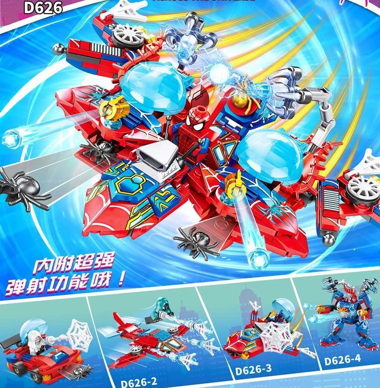 | nameOriginal | Avengers America Iron Man Spider-Man Hawkeye 4-in-1 Mecha Spider Future Fighter Assembly Building Block Toy 6+ |