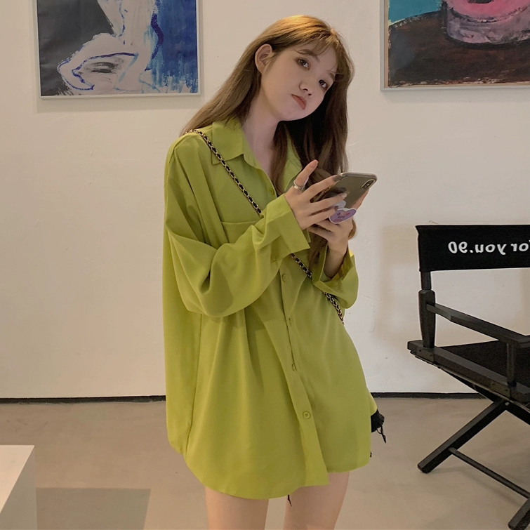 Avocado green spring and summer loose chiffon shirt