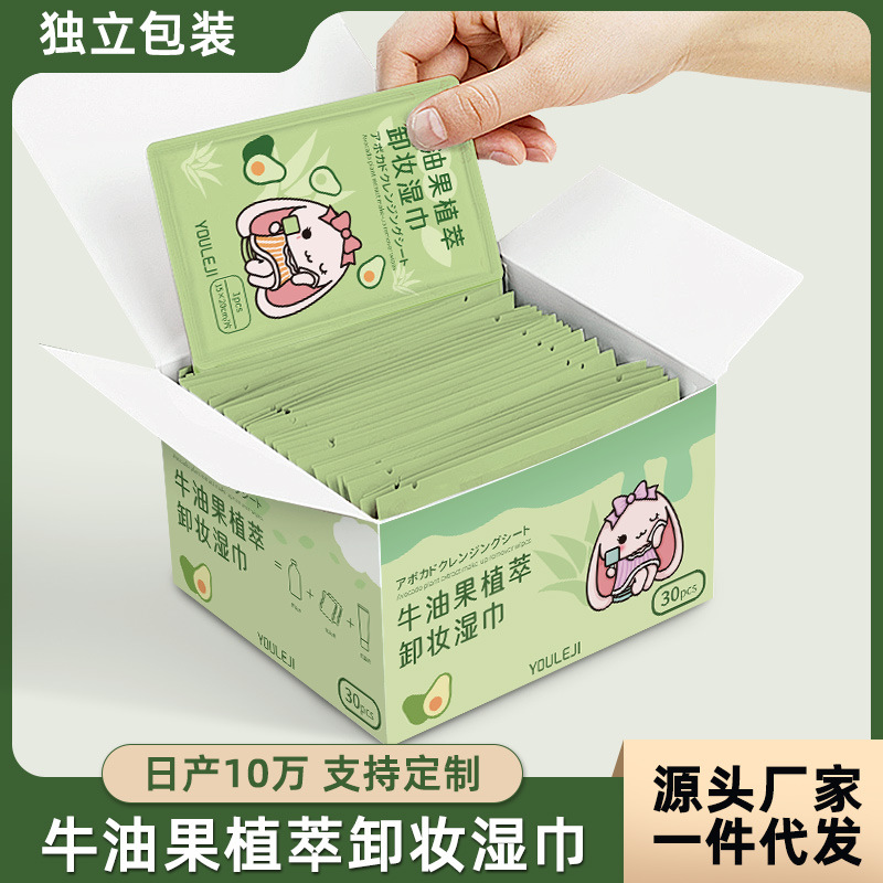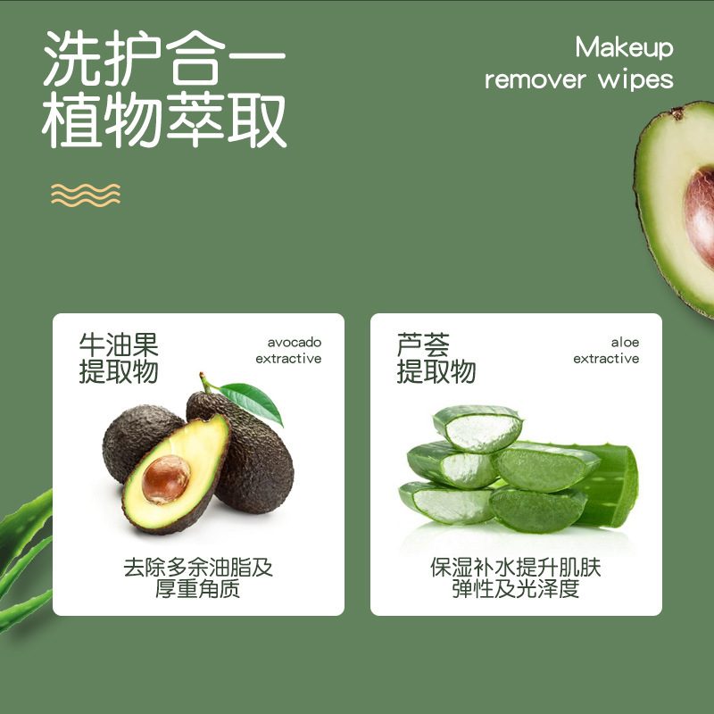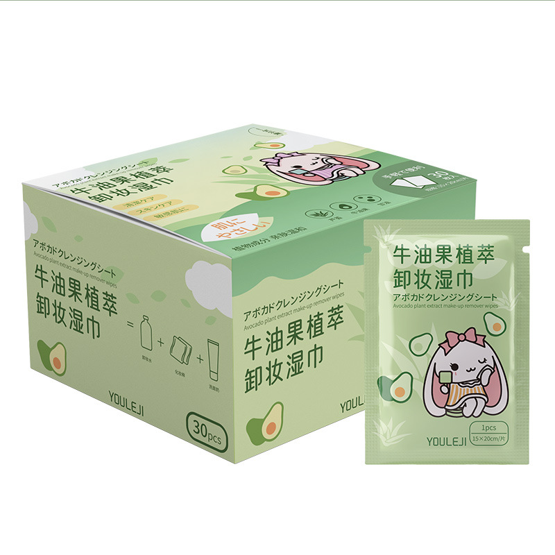 | nameOriginal | Avocado makeup remover wipes 30 pieces of independent makeup remover towel portable disposable mild cleaning wet tissue wholesale |