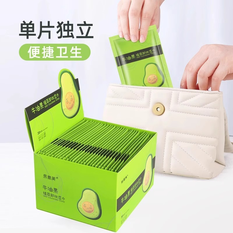 | nameOriginal | Avocado makeup remover wipes wipes eye and lip facial makeup remover cotton pad disposable single piece independent packaging water Cotton |