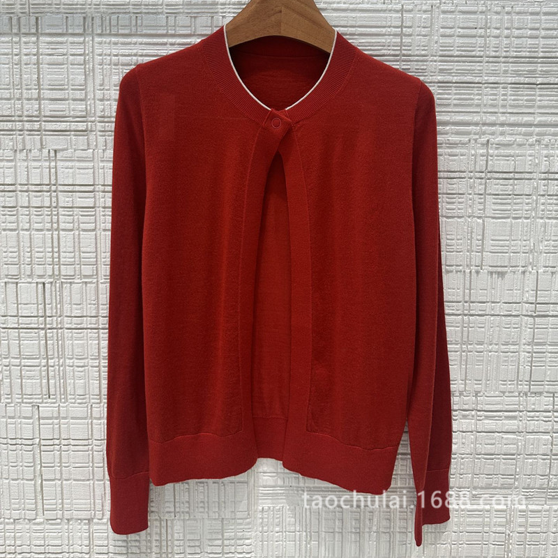 | nameOriginal | AW68969 Round Neck Contrast Color Edge Design Wool Sweater Casual Fashionable Slimming All-match Long Sleeve Cardigan Top for Early Autumn |