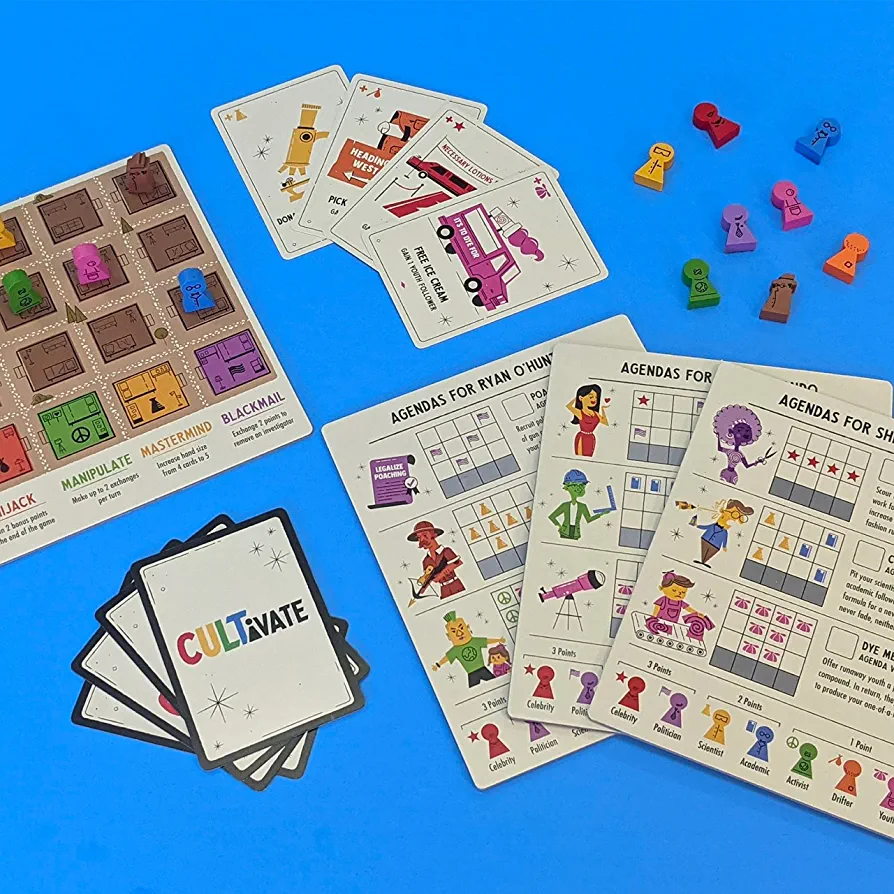 | nameOriginal | Cultivate Board Game, Award-Winning, Satirical Cult Leaders, Casual Board Game, Take-That, Ages 14+, for 2-5 Players, 20-50 Min Playtime, Made by Pops & Bejou Games |