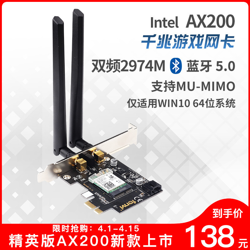 | nameOriginal | AX200/9260AC WiFi6 generation desktop Bluetooth 5.0 built-in Gigabit PCI-E wireless network card |