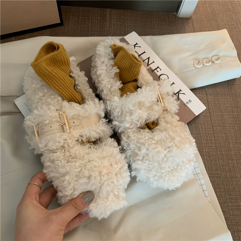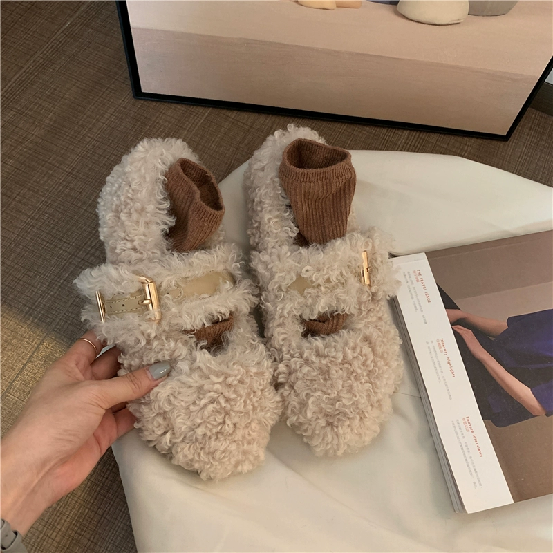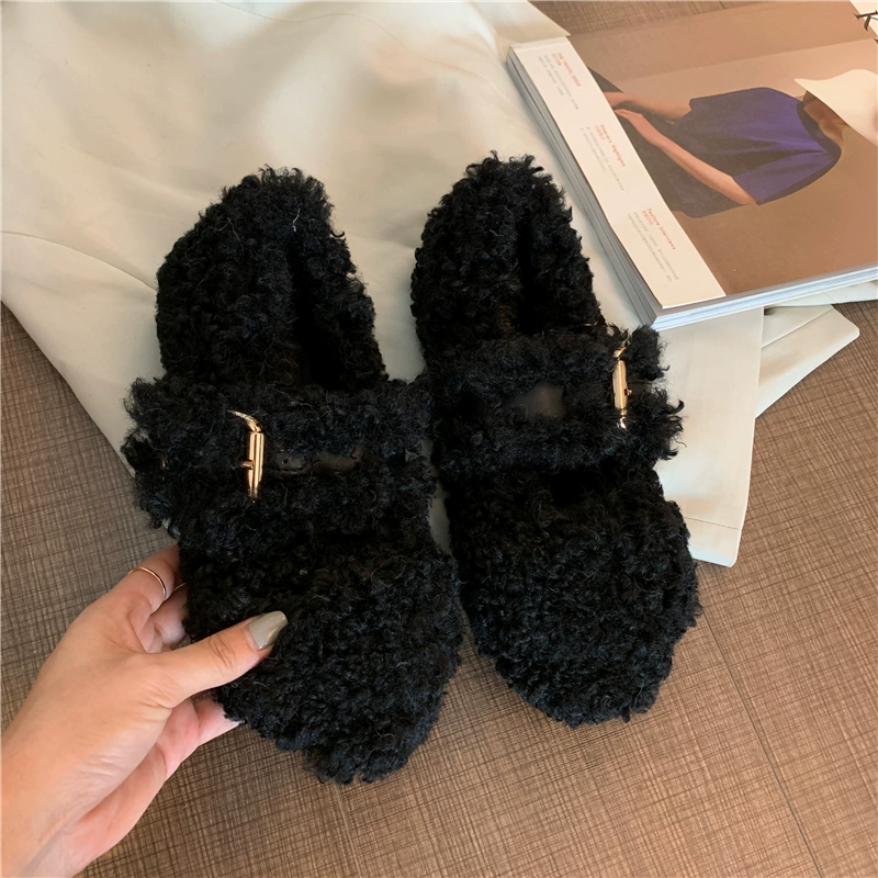 Axe’s same hairy shoes women wearing 2024 autumn and winter new net red Mary Zhen shoes lamb hair flat bottom single shoes