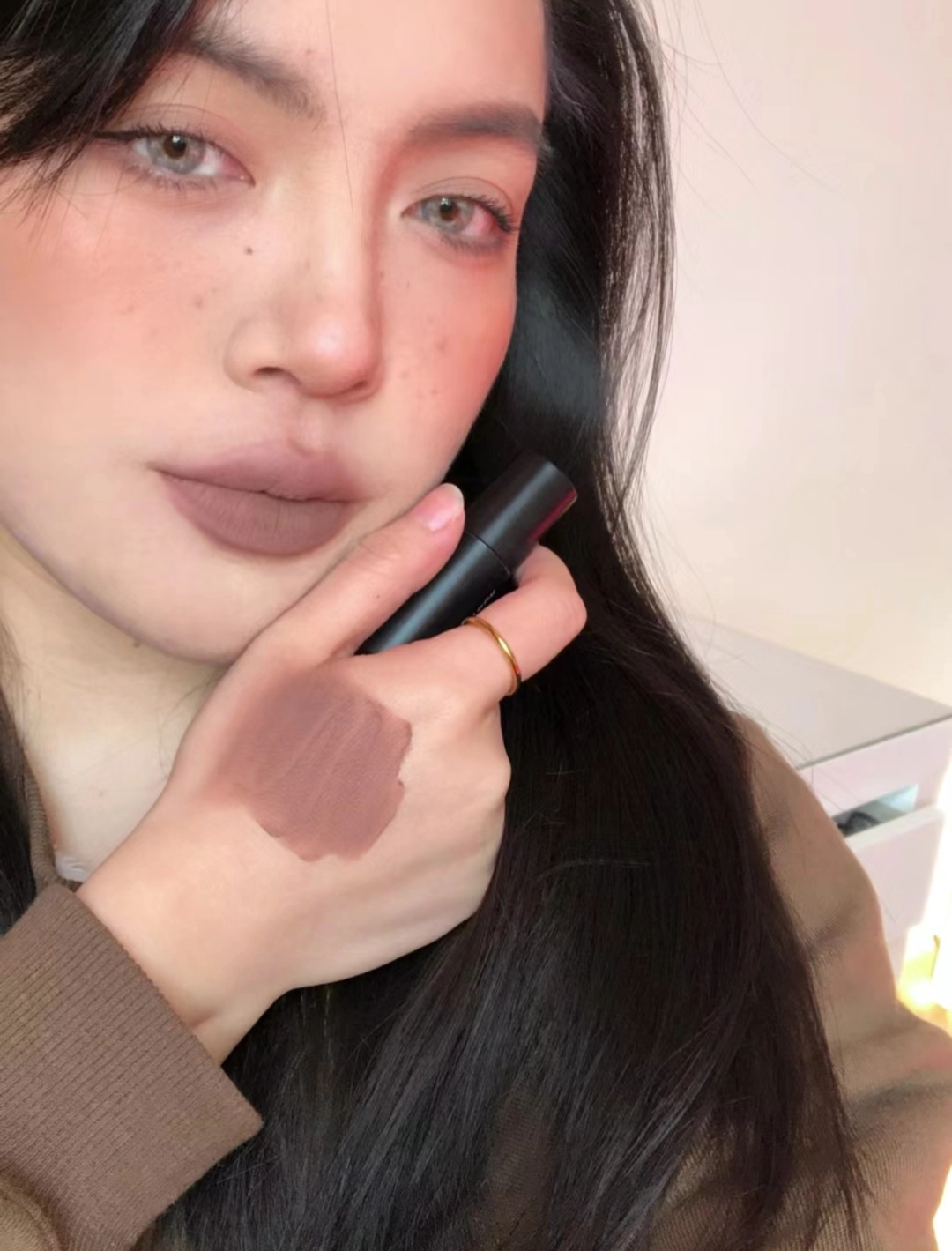 | nameOriginal | B08 European and American style play makeup mouth brown nude color black rabbit |