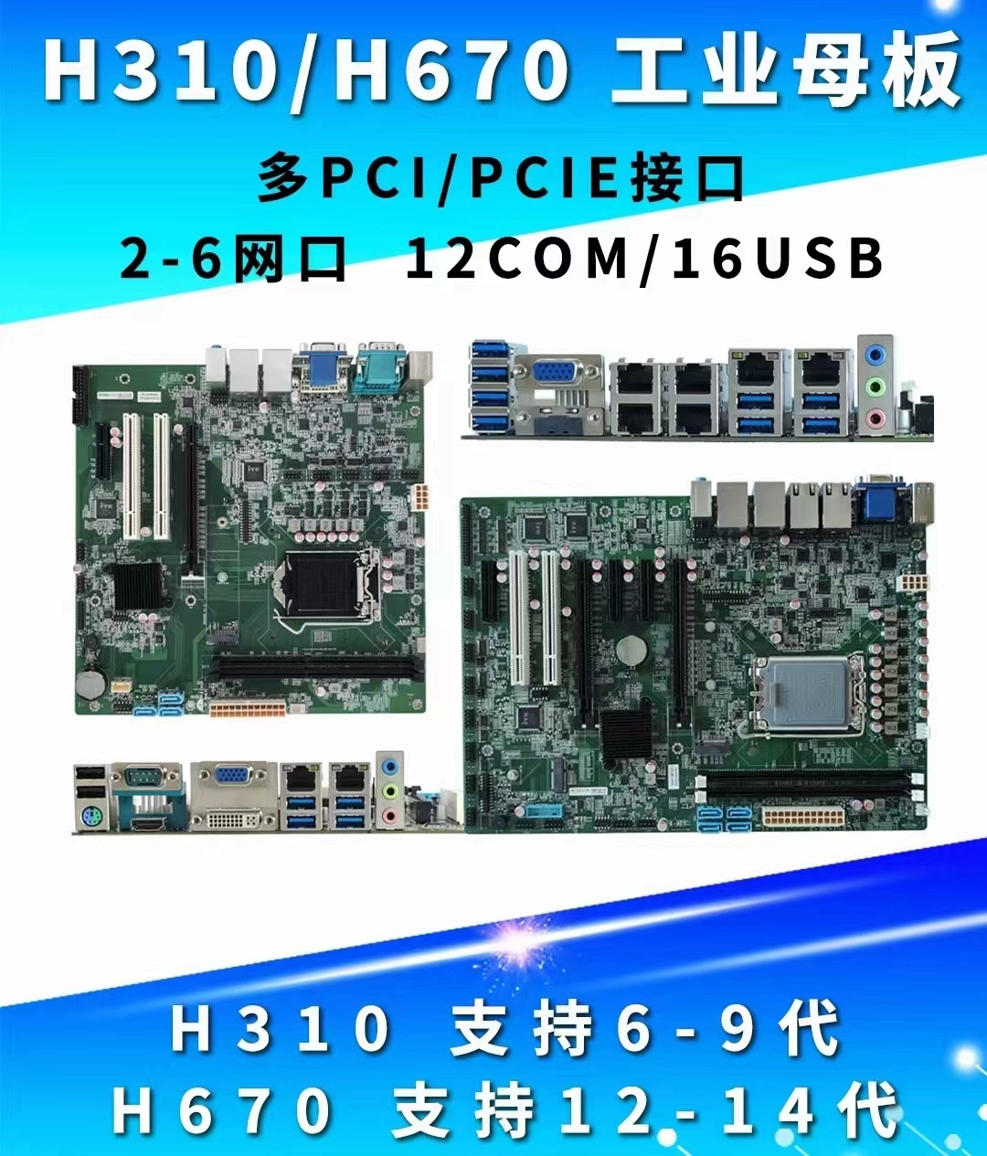 | nameOriginal | B365/H310/Q27DM/H670 industrial motherboard single and double network 6 network PCI/485/10 com/6th generation/14 |
