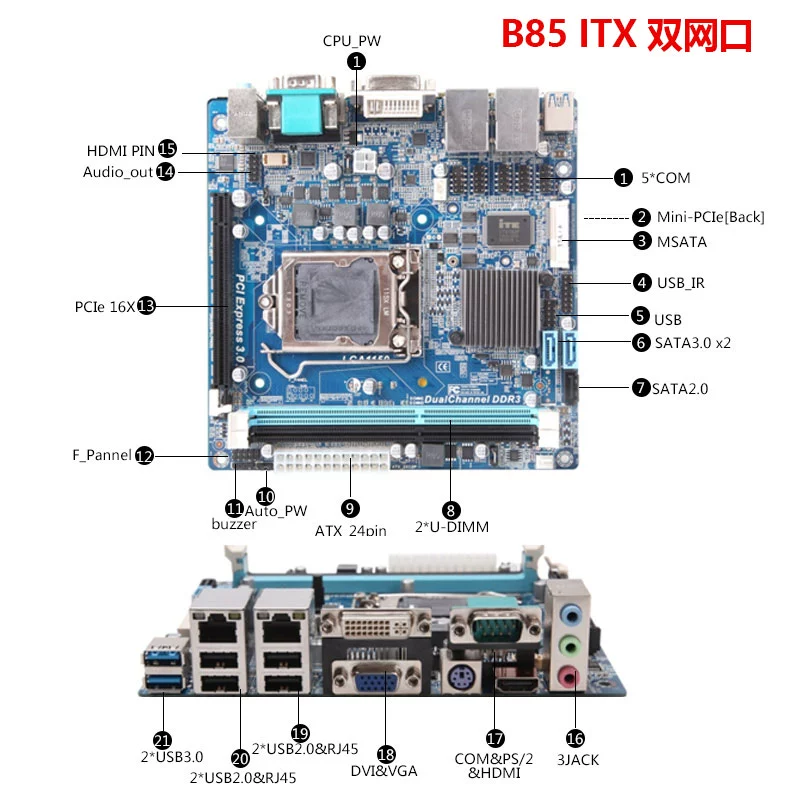 b85 h110 H310 b360 q370 dual network port industrial control motherboard miniITX industrial computer motherboard