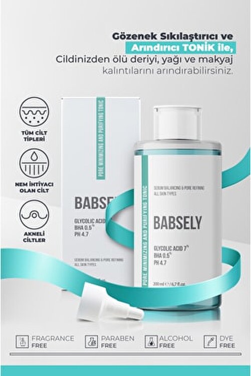 What is BABSELY GLYCOLIC ACID TONIC? Moisturize the skin with the content of AHA AND BHA, cleanse and nourish the pores from dead cells and dirt. It tightens the pores, and on the surface of the skin, cleanses the appearance of impurities. How to use it? After cleansing your skin, sterilysoak cotton with tonic and apply it to the skin. It is recommended to use at night. Does not require rinsing. Beware of the eye area. Which skin types are suitable for? Skin with pore problem Skins that need sebumbalancing on dry, oily or combination skin Suitable for skin types with dark spots and skin tone inequality problems.