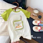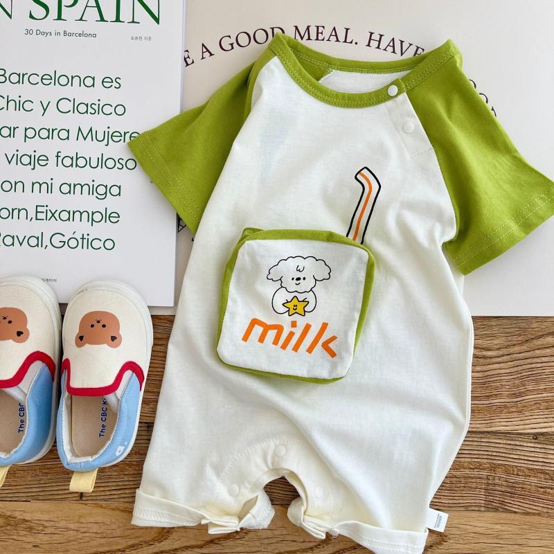 Baby 2023 summer color matching cartoon short-sleeved romper 0-2 years old boys and girls short romper 0037