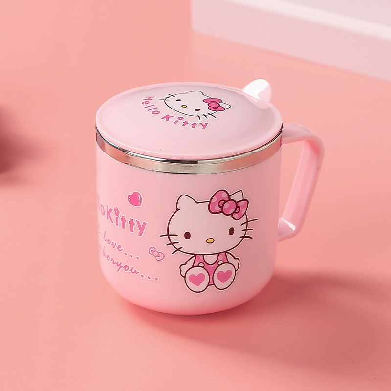 Baby and child anti-fall and anti-scald bowl 304 stainless steel tableware baby eating bowl cartoon double-eared bowl with lid and complementary food bowl