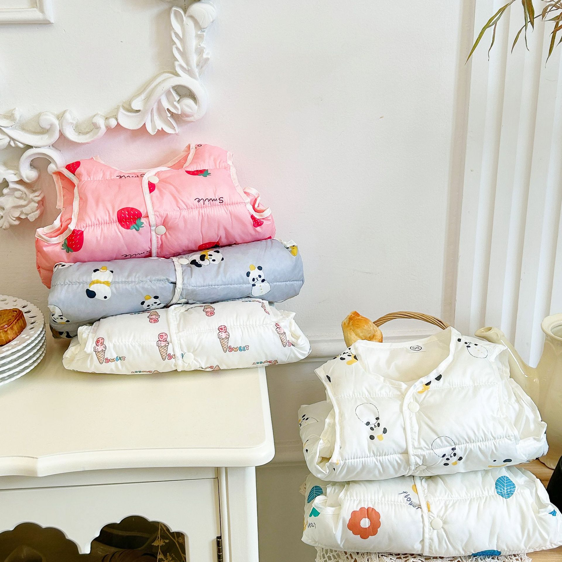 Baby autumn and winter quilted vest coat for boys and girls warm inside and outside wear small vest one-piece delivery