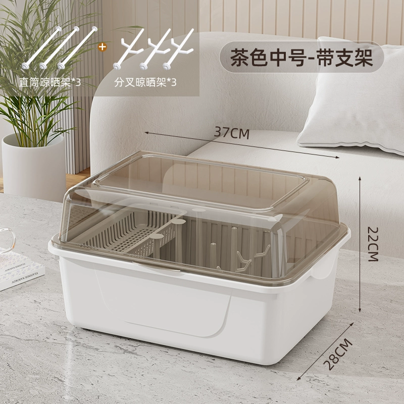 Baby bottle storage box for drying and draining rack with cover dust-proof baby food supplement tableware storage box cabinet