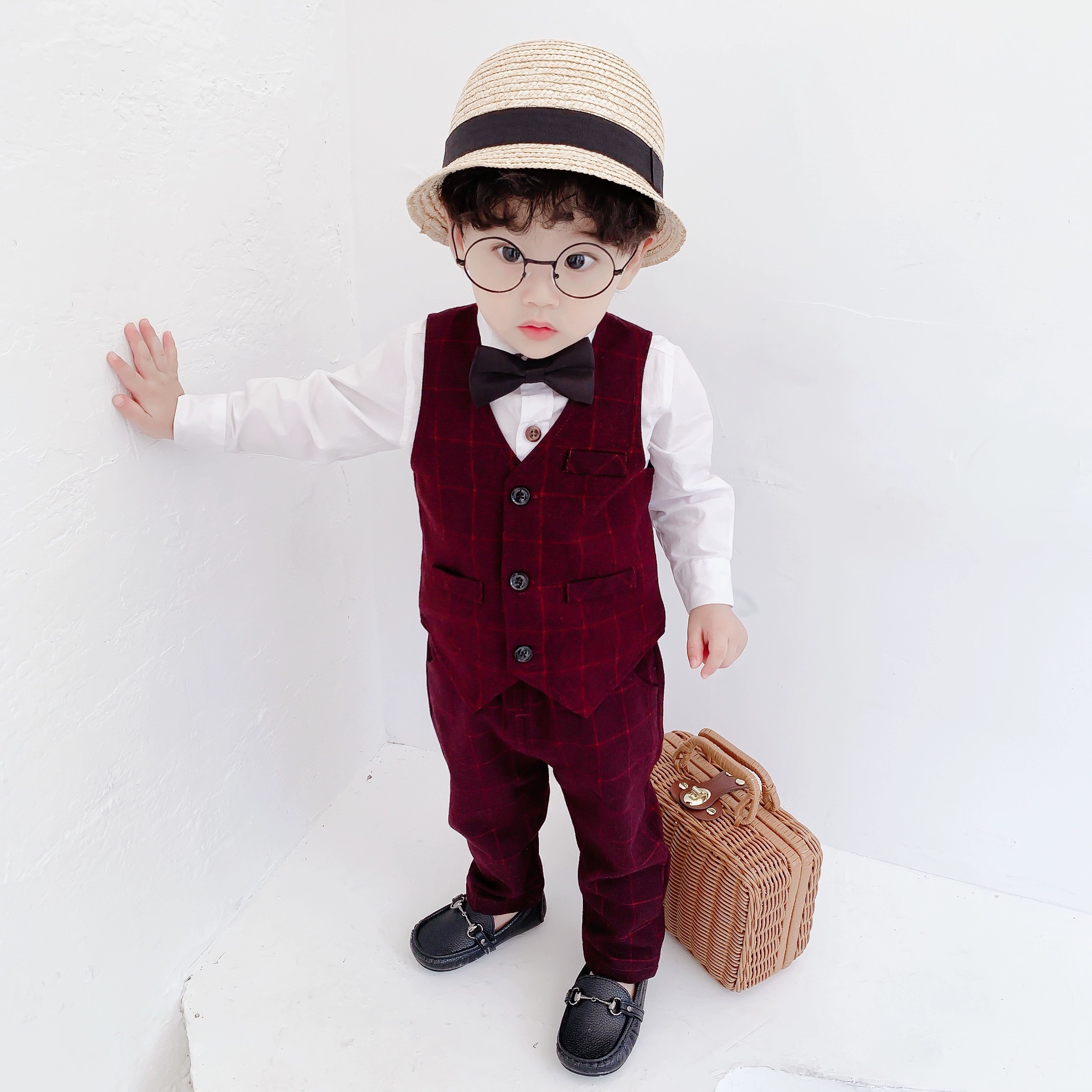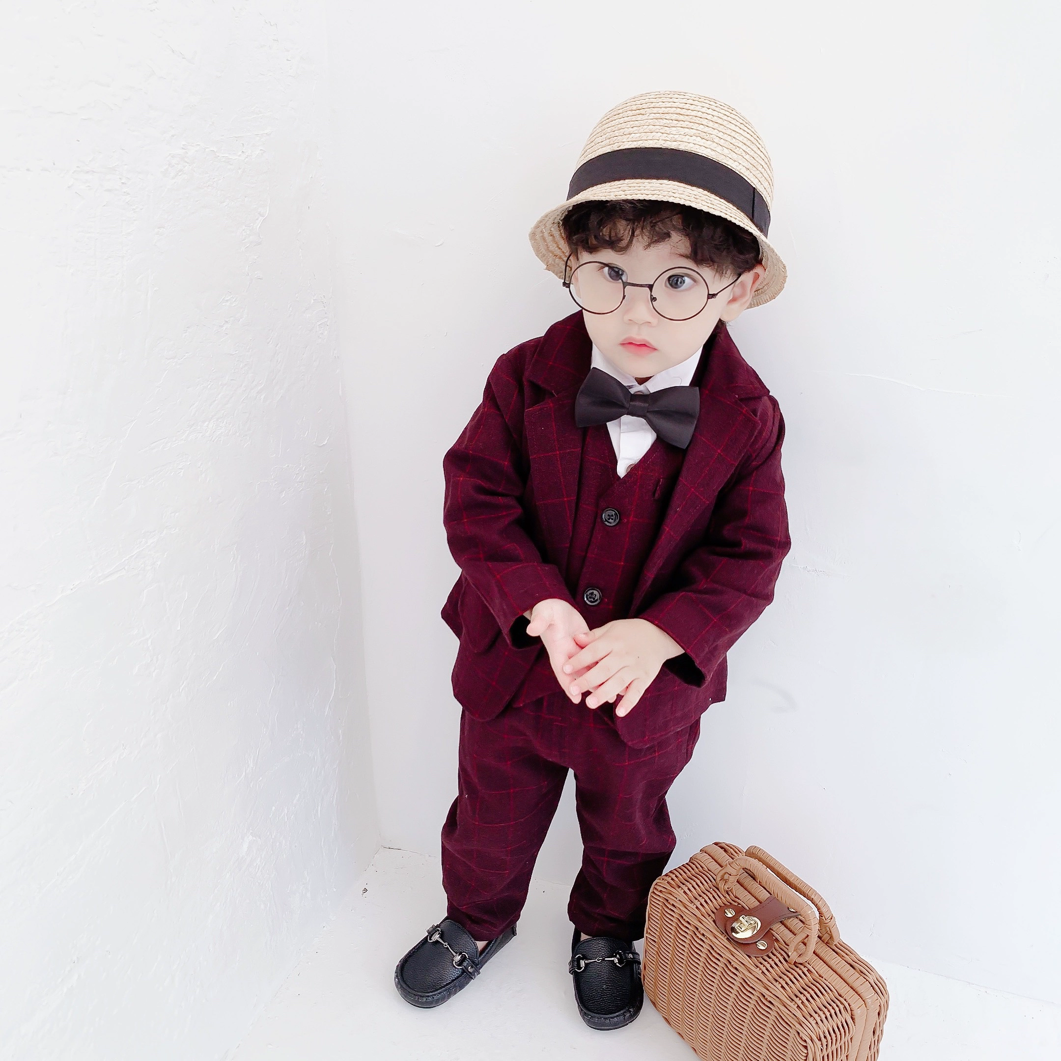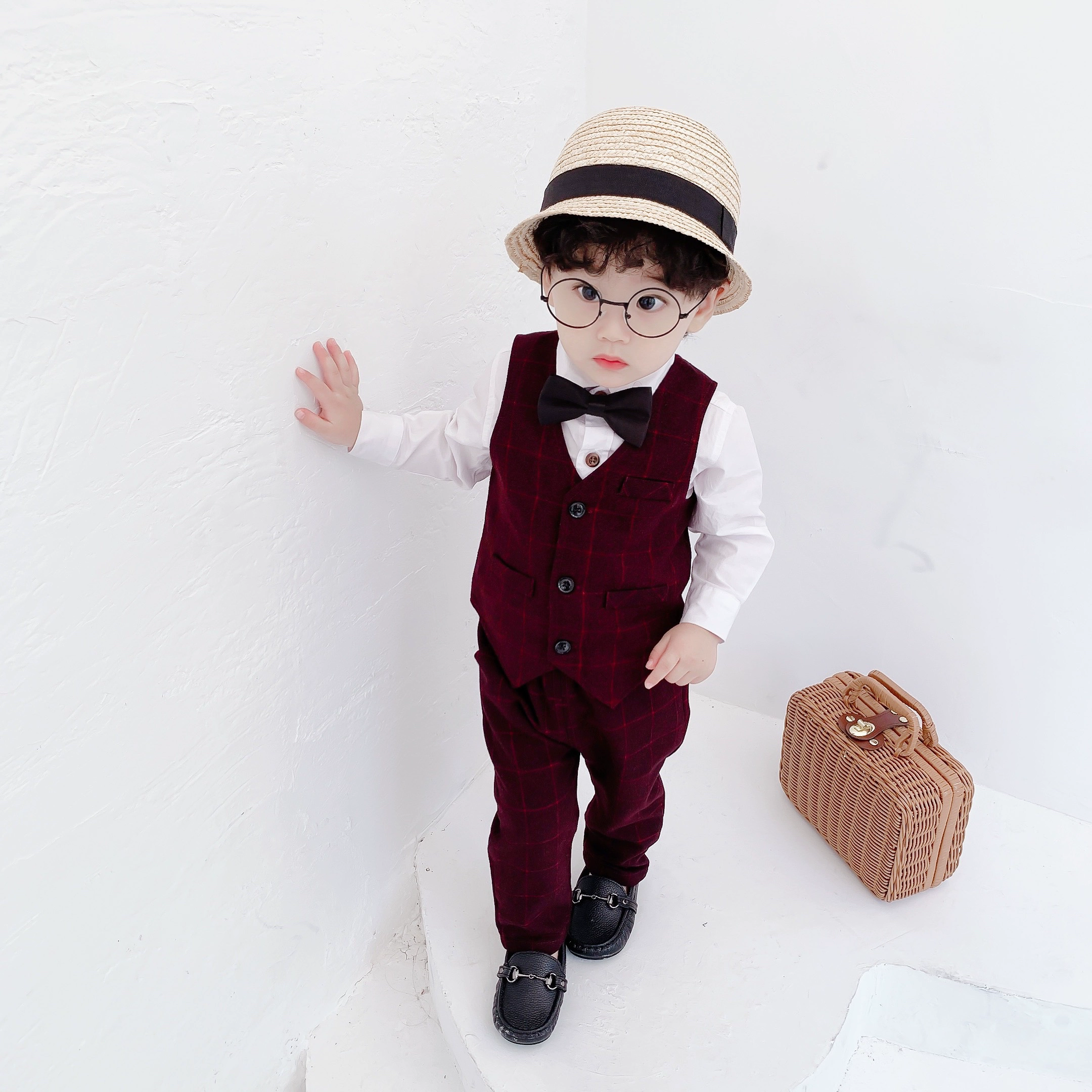 Baby boy's first birthday suit, baby's first week dress, children's wedding flower girl suit, autumn and winter velvet suit, trendy