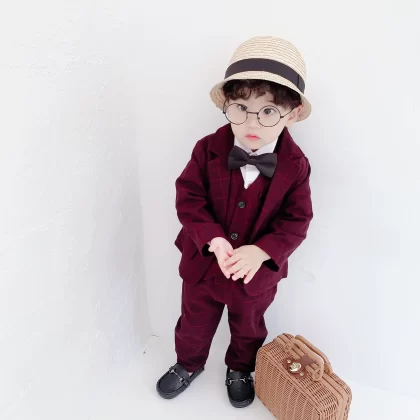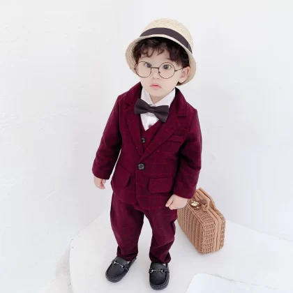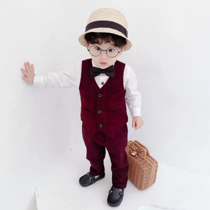 Baby boy’s first birthday suit, baby’s first week dress, children’s wedding flower girl suit, autumn and winter velvet suit, trendy