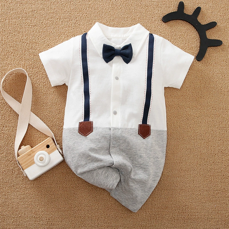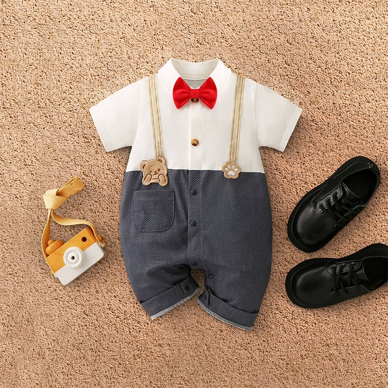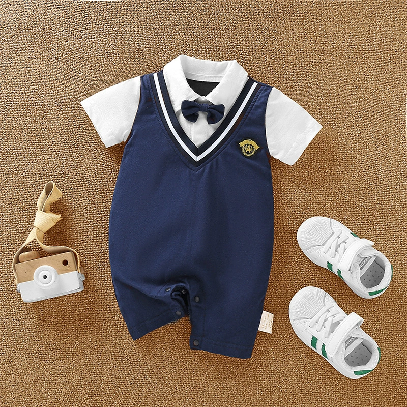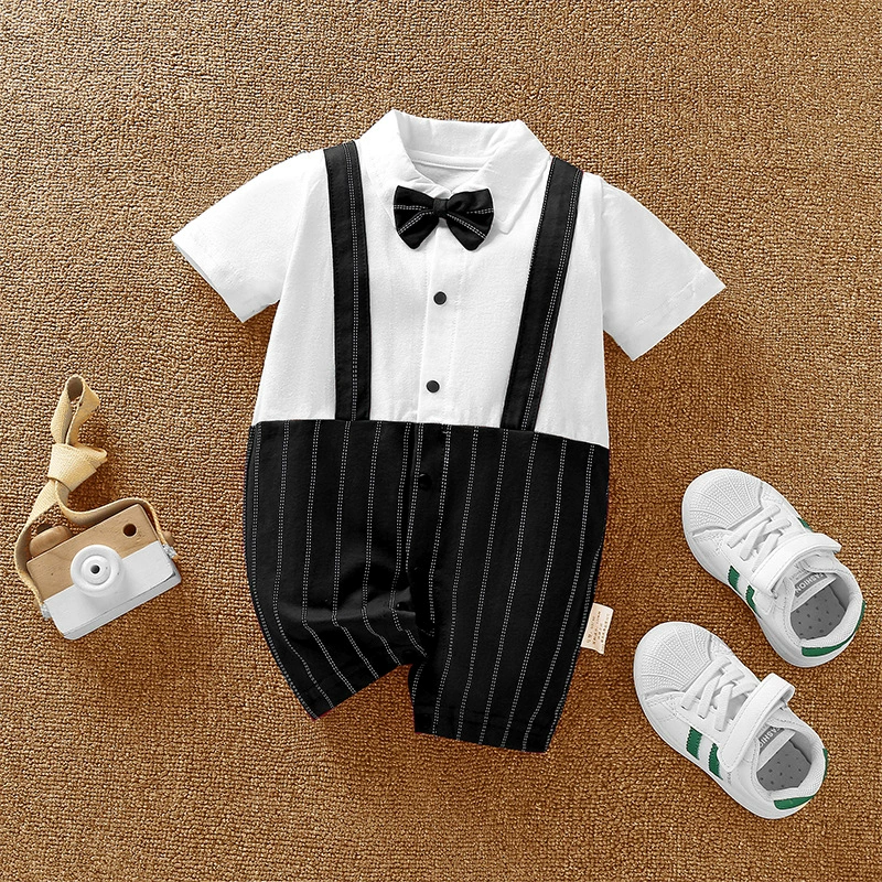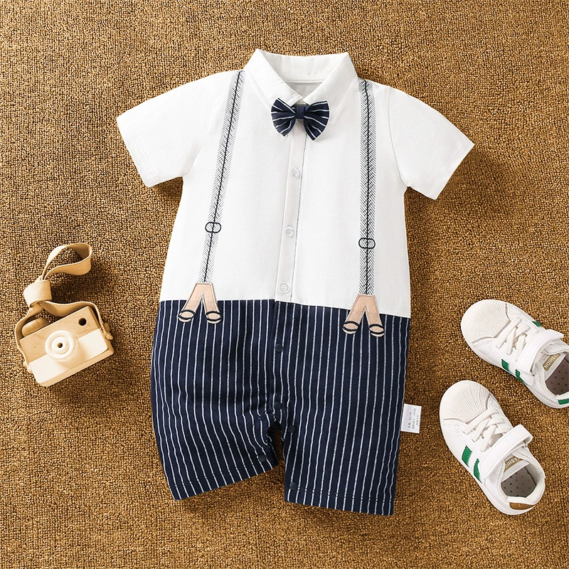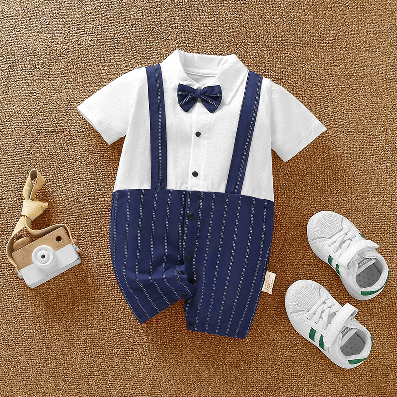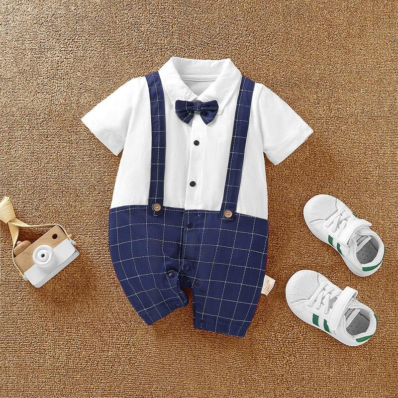 | nameOriginal | Baby boy's pure cotton short-sleeved gentleman's British super cute summer dress |