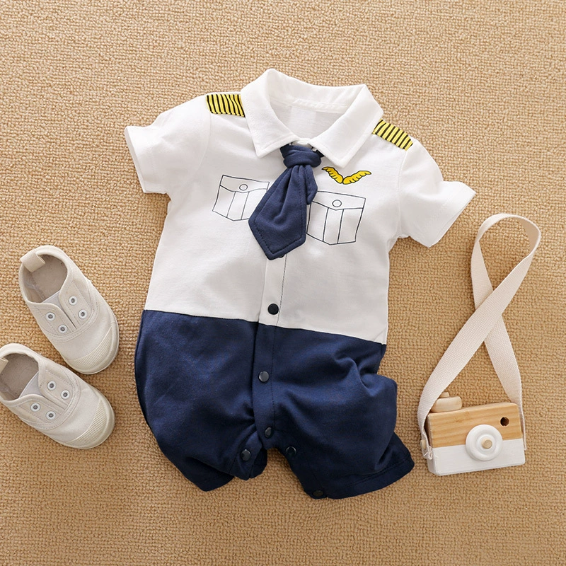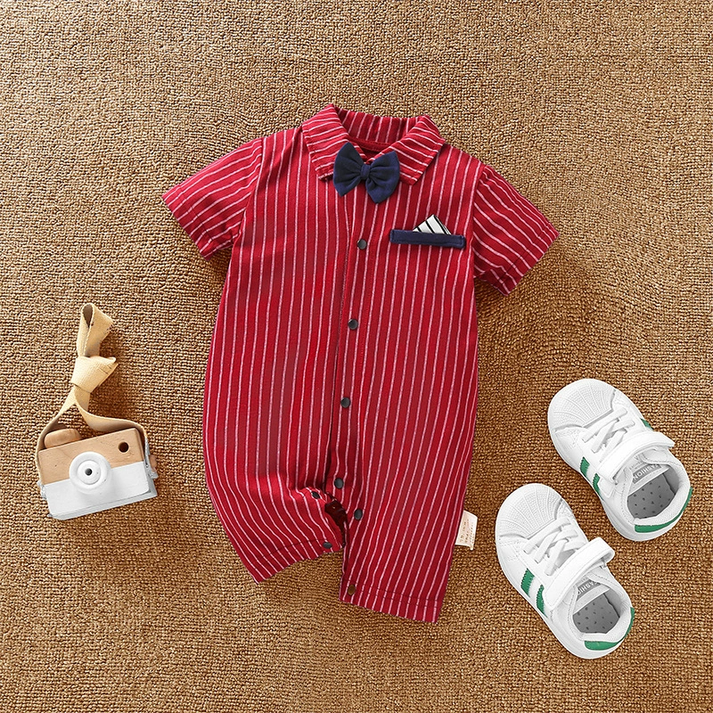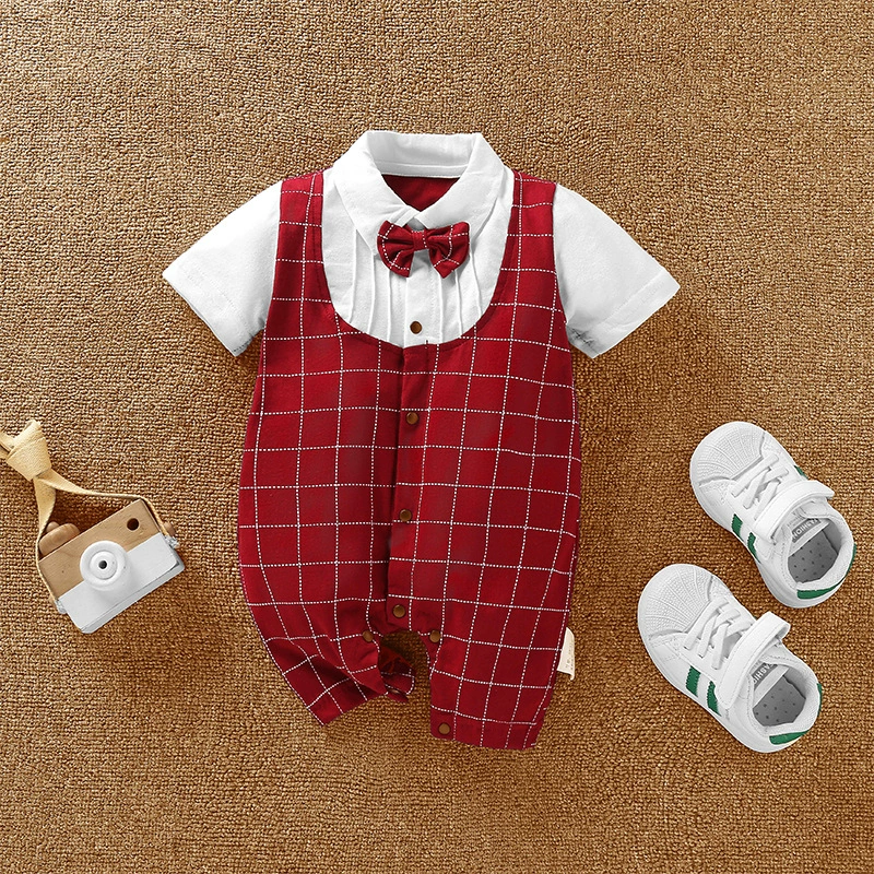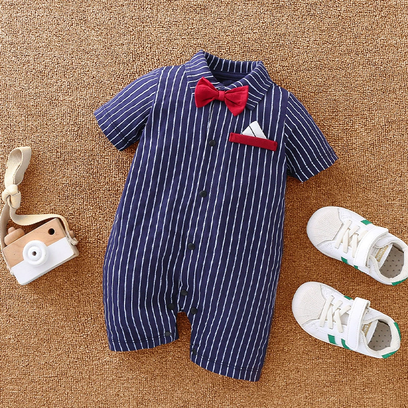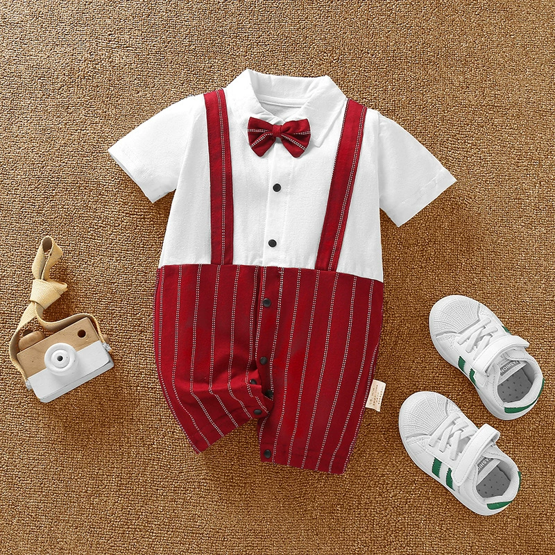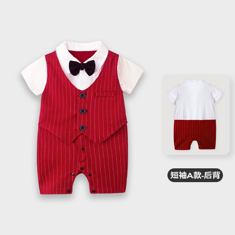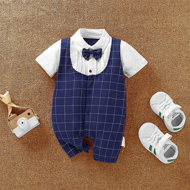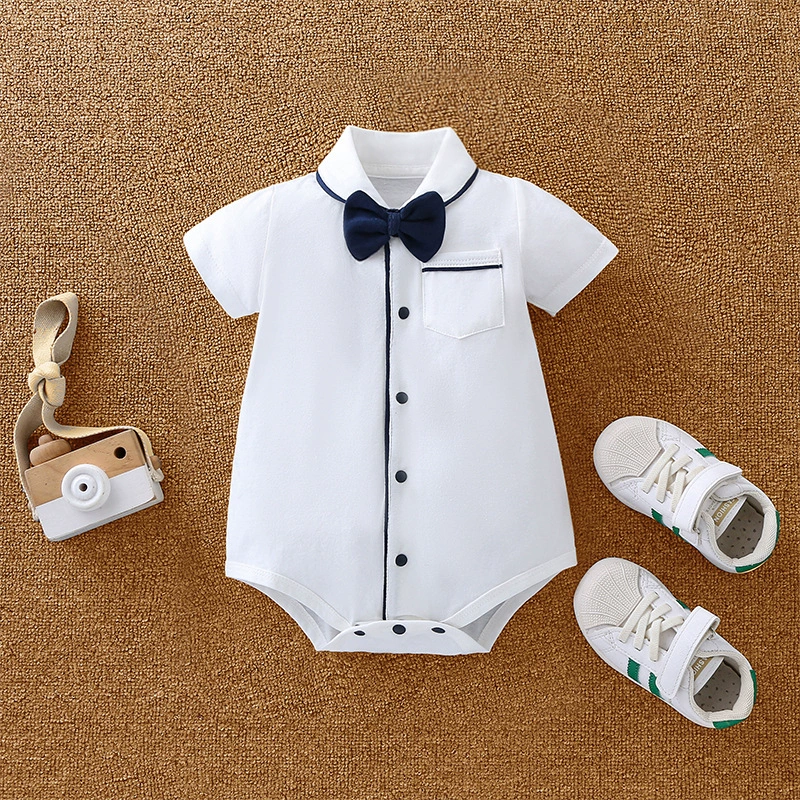 | nameOriginal | Baby boy's pure cotton short-sleeved gentleman's British super cute summer dress |