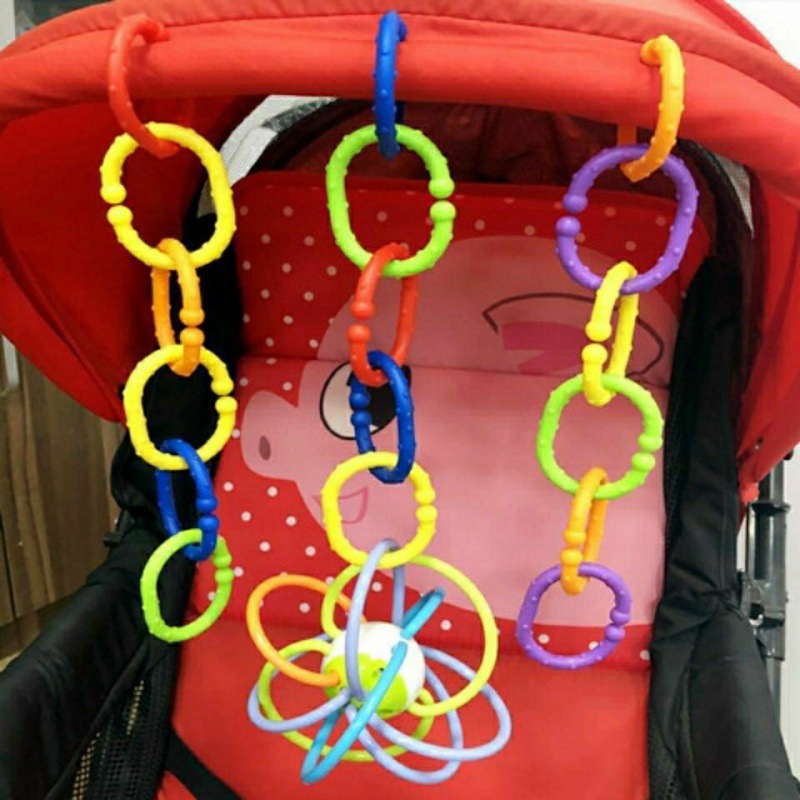 | nameOriginal | Baby carriage hook push toy collar bed wrap set toy accessories rainbow pressure rubber collar cross-border wholesale |