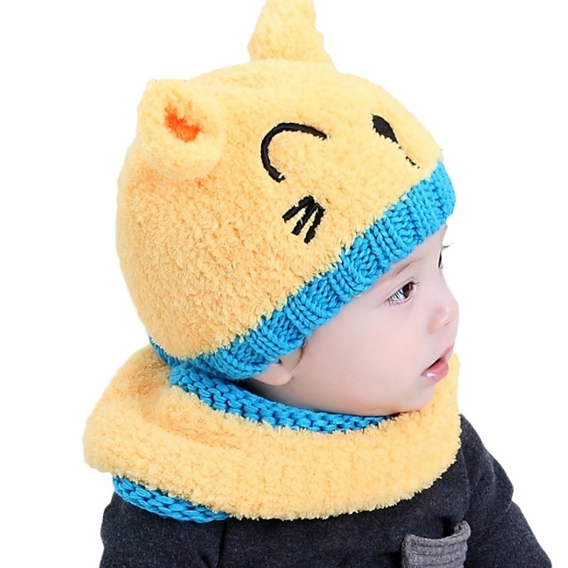 Baby Cat Hat Scarf Two-piece Set Autumn and Winter Baby Warm Plush Pullover Hat Scarf Two-piece Set