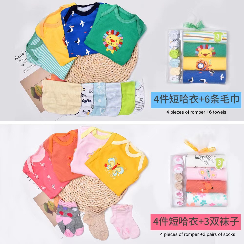 | nameOriginal | Baby clothes short sleeve romper small towel socks suit cotton cute animal male and female baby newborn gift box |