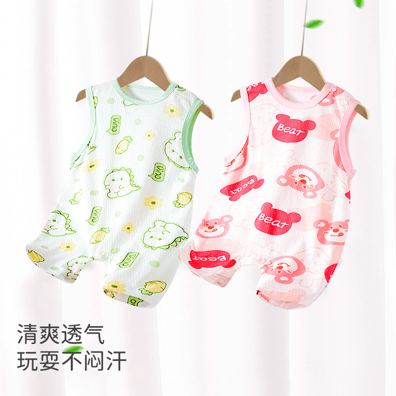 Baby clothes summer thin baby jumpsuit cotton boneless vest sleeveless climbing clothes out of summer cross-border