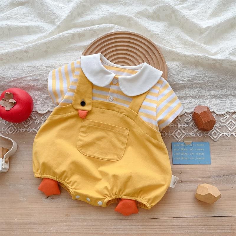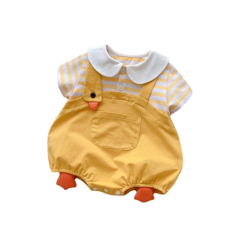 | nameOriginal | Baby clothing summer short-sleeved thin striped jumpsuit summer men and women baby cute foreign-style bag fart suit Korean version |