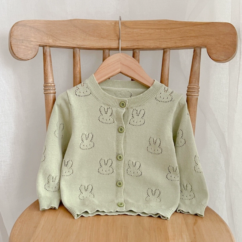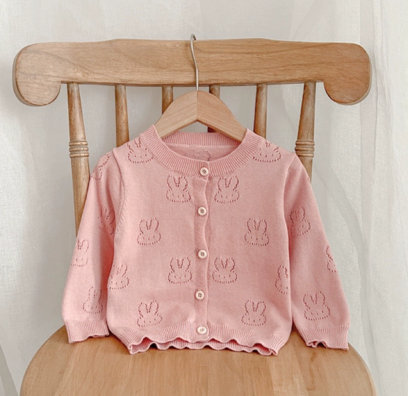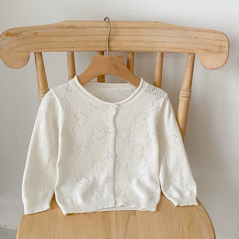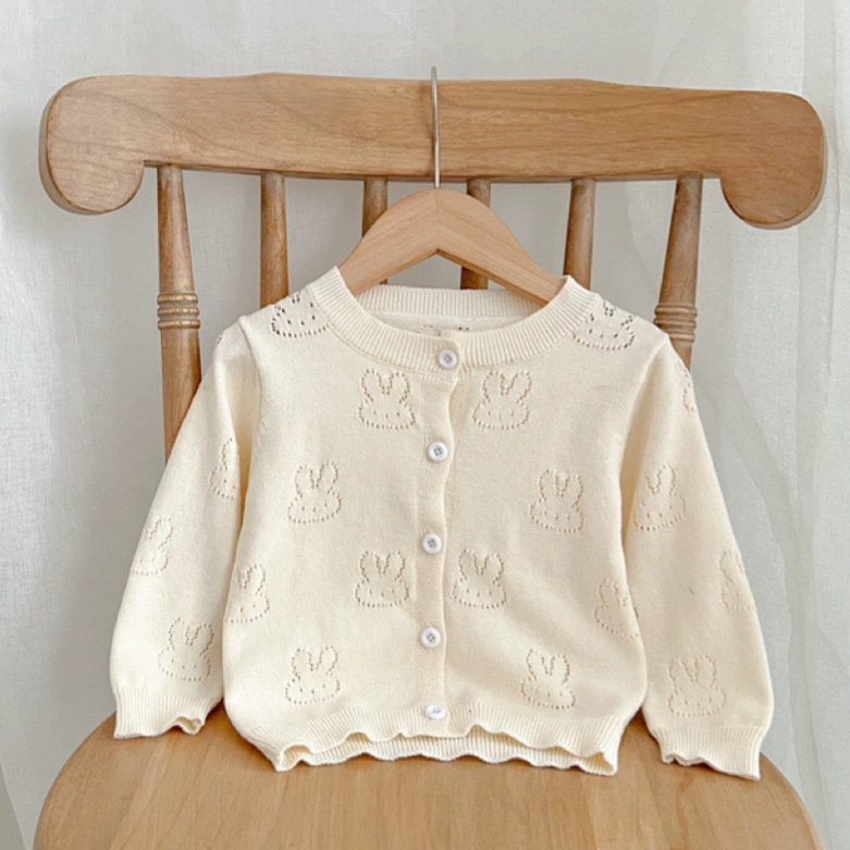| nameOriginal | Baby coat, cute and super cute knitted cardigan, spring and autumn thin girl's summer dress, baby rabbit hollow air-conditioning shirt |
