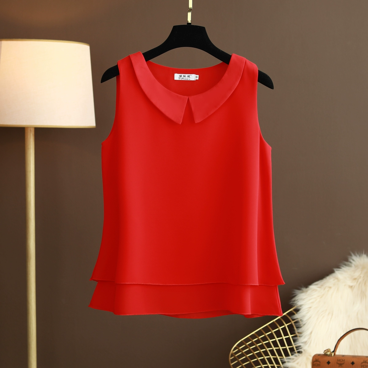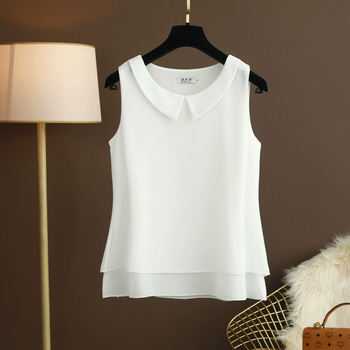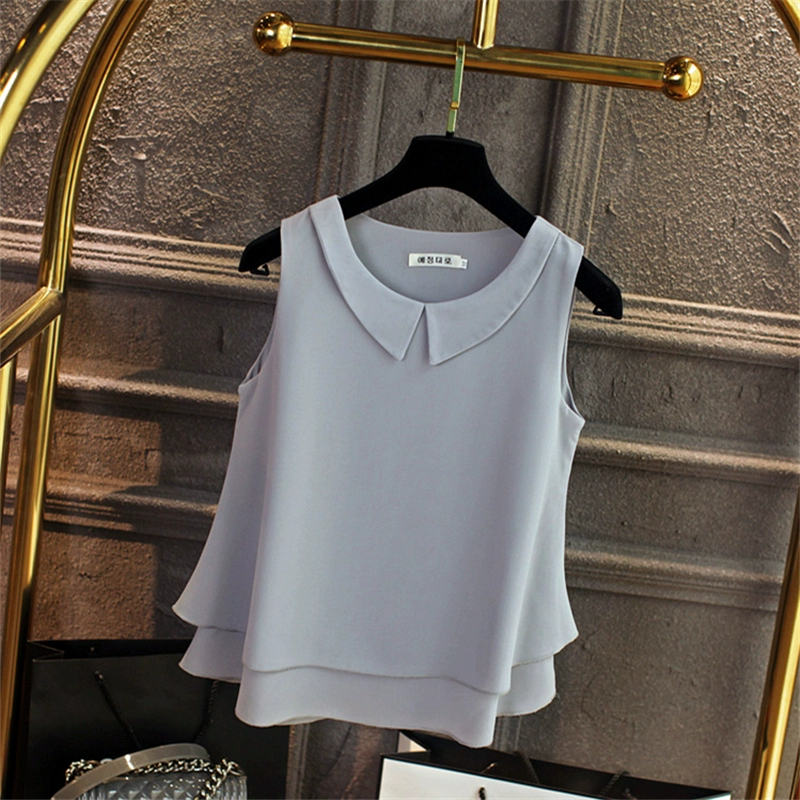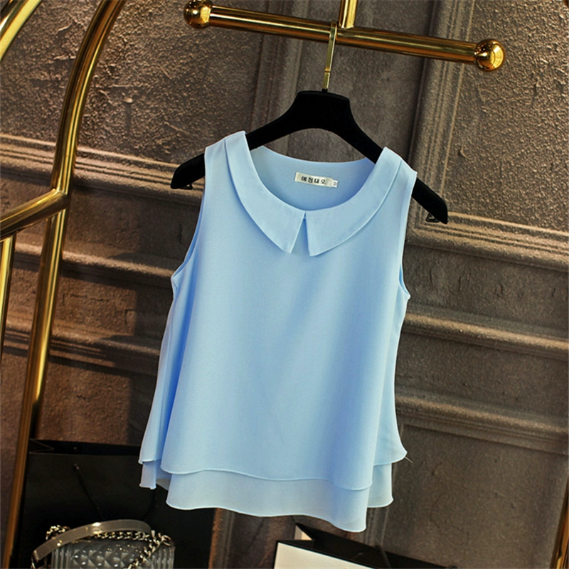 | nameOriginal | Baby doll collar loose sleeveless halter top chiffon shirt |