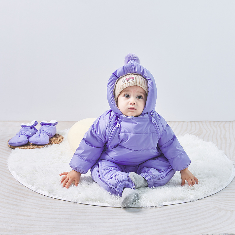 Baby down jacket jumpsuit class a 90 white duck down baby romper thickened newborn holding clothes out