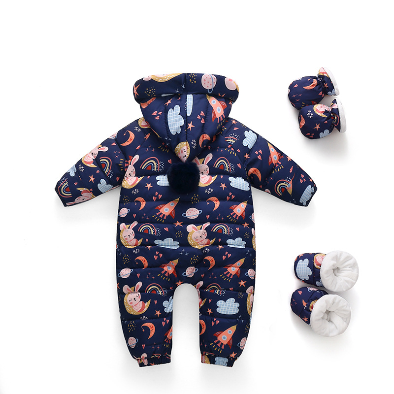 | nameOriginal | Baby down jacket jumpsuit newborn thickened out holding clothes male and female baby fleece-lined cartoon romper winter |