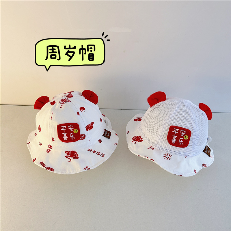 | nameOriginal | Baby festive one-year-old hat baby hat summer sun hat spring and autumn fisherman hat cute boys and girls baby sunscreen hat |
