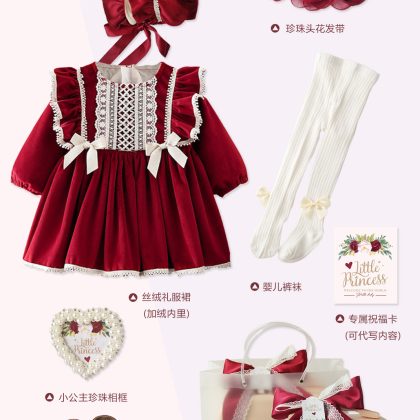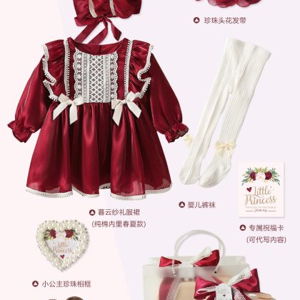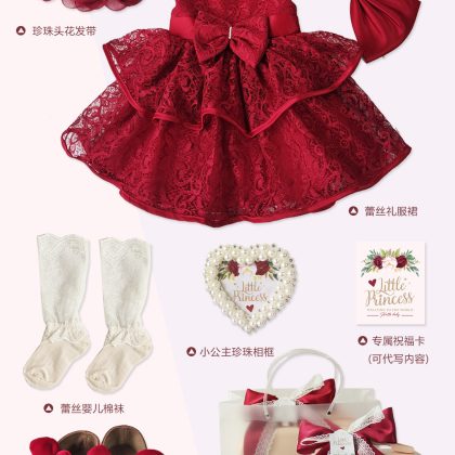 | nameOriginal | Baby festive red dress female baby little Princess lace rose gift box birthday banquet gift |