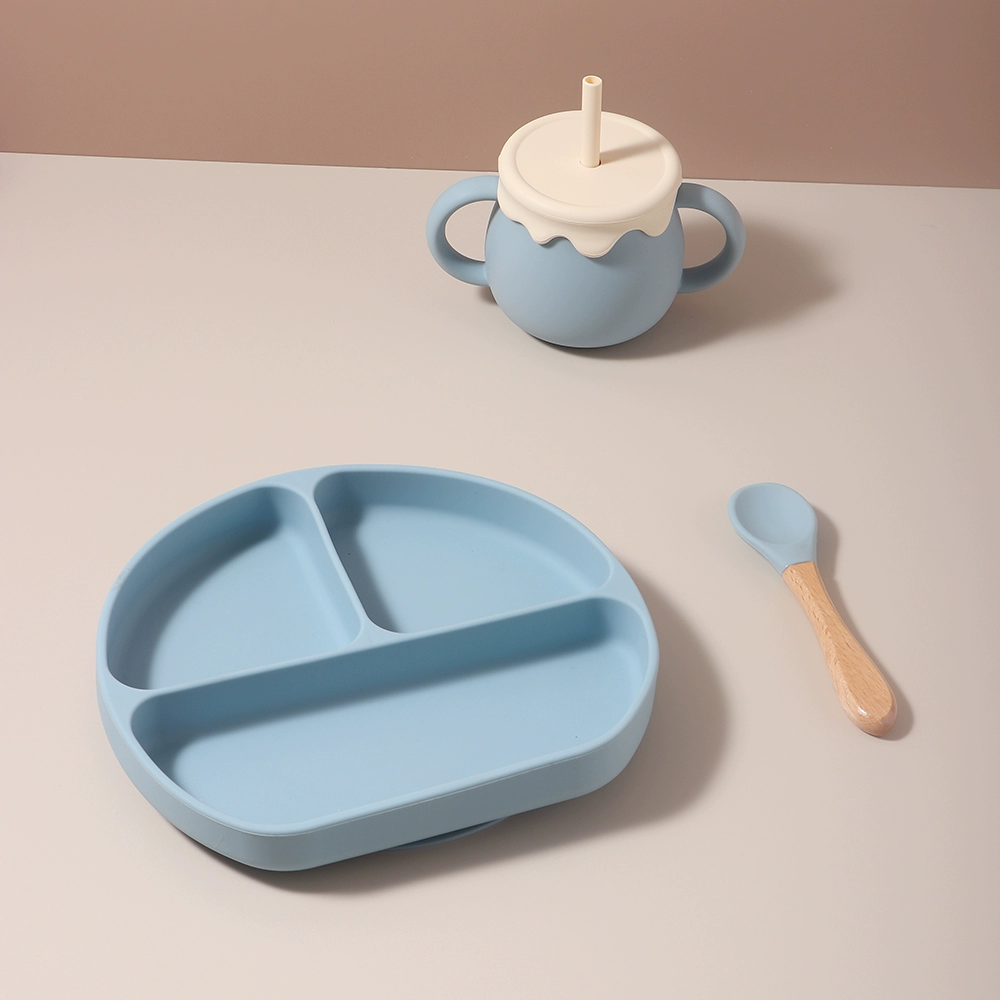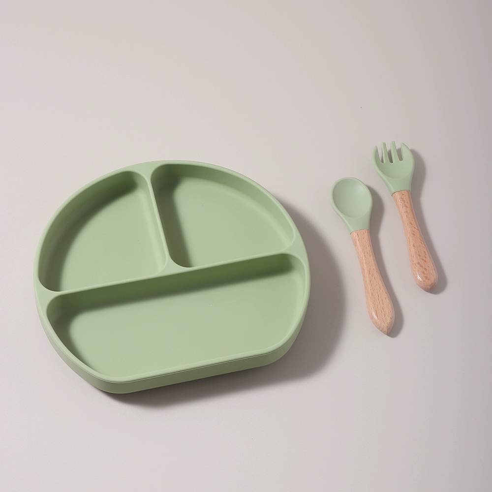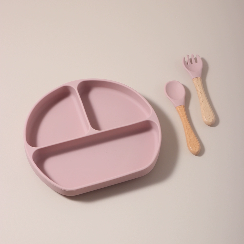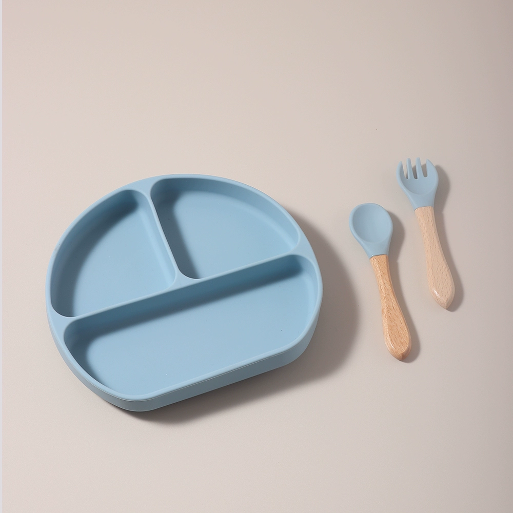 Baby food grade silicone suction cup plate 316 stainless steel fork and spoon baby independent feeding supplement anti-fall tableware