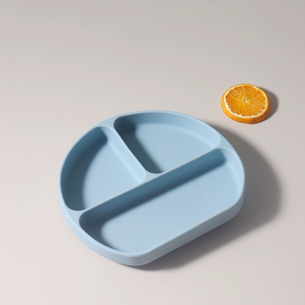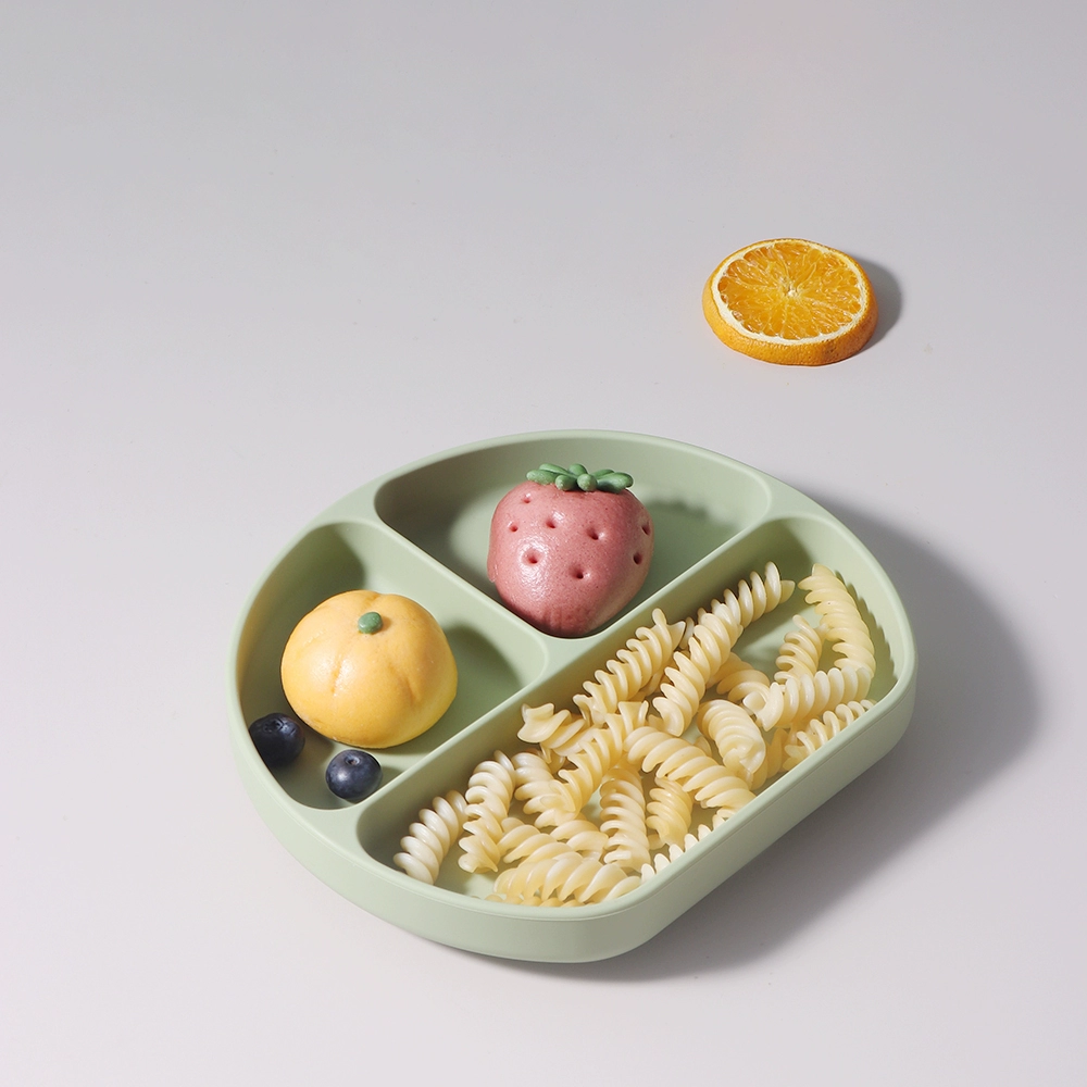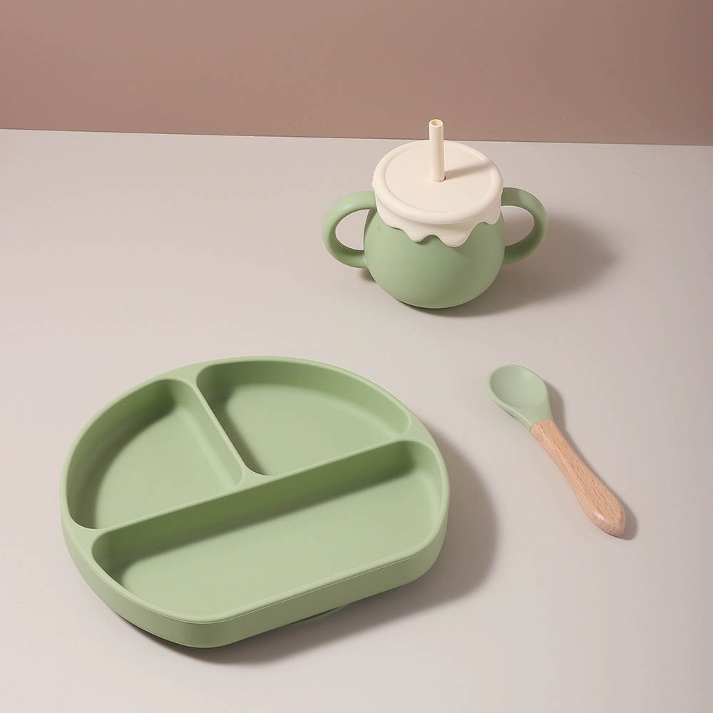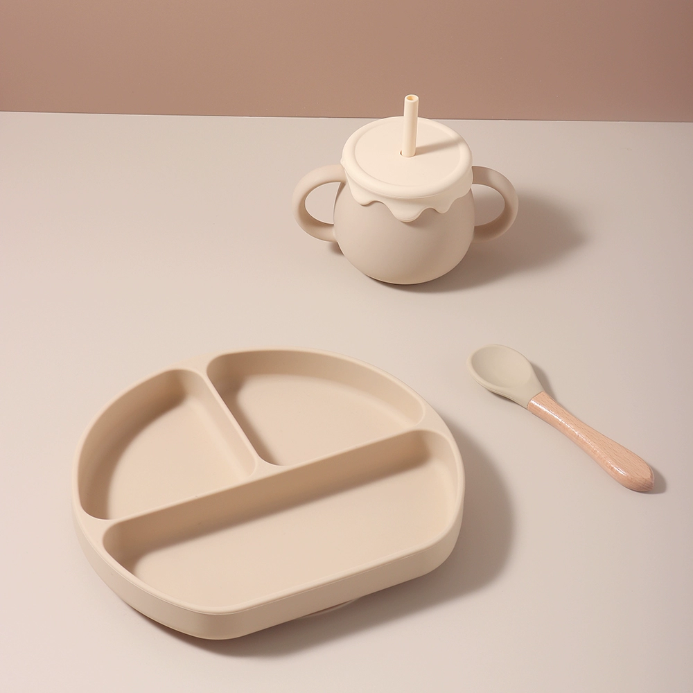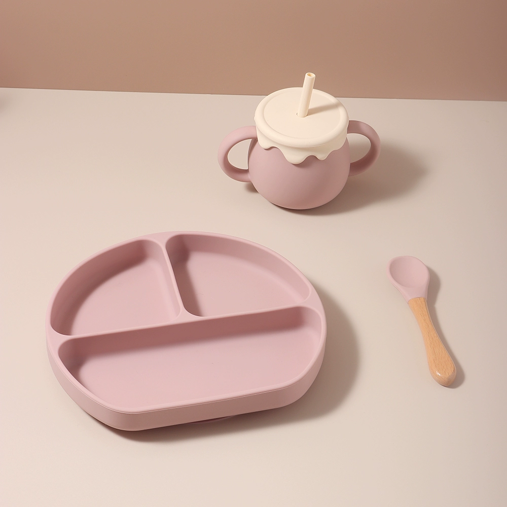 Baby food grade silicone suction cup plate 316 stainless steel fork and spoon baby independent feeding supplement anti-fall tableware