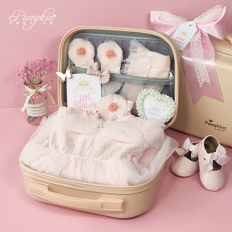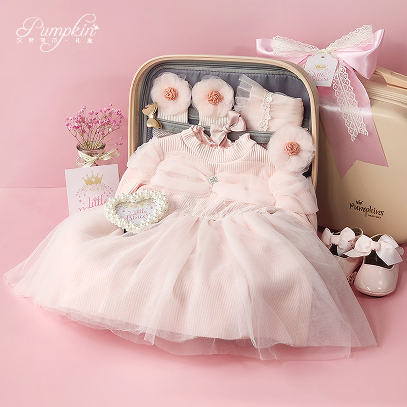 | nameOriginal | Baby Gift Box Little Princess Dress Dress Children's Baby One Hundred Days Old Banquet Gift Bag Spring and Autumn Pink Set |