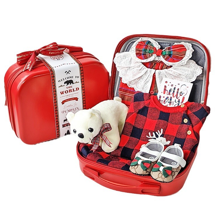 Baby Gift Box red festive classic Scottish plaid newborn baby men and women Spring and Autumn gift 0-1 years old