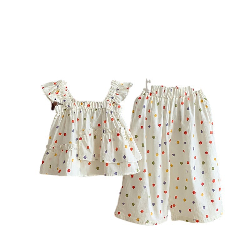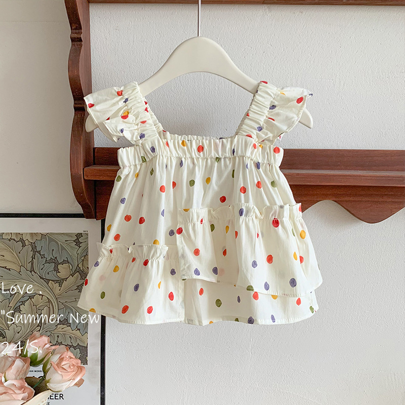 | nameOriginal | Baby Girl Color Poll Dot suit 2024 Summer New Girl Korean Style Sleeveless Top Straight Pants Two-piece Set |