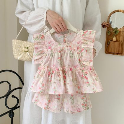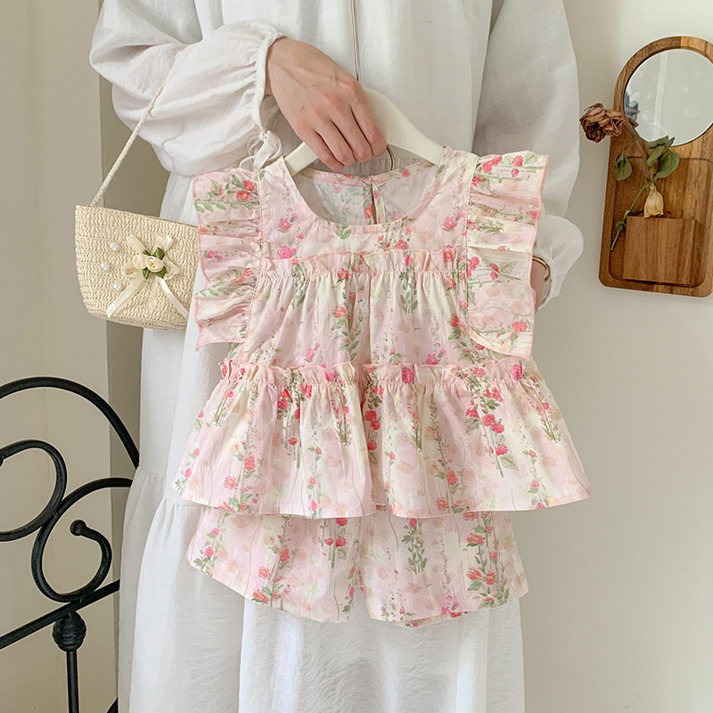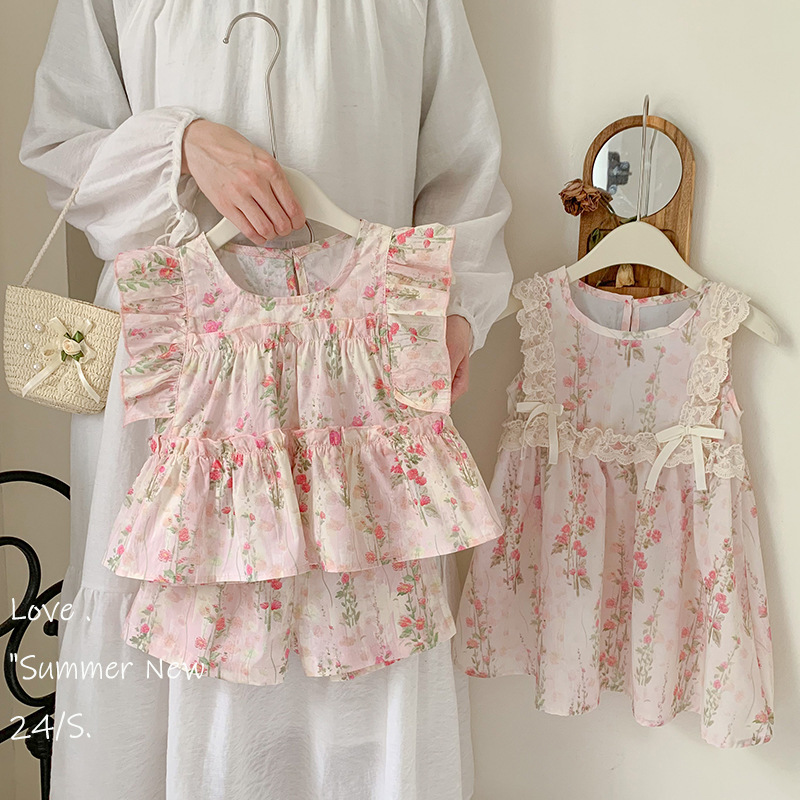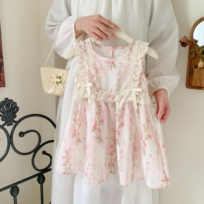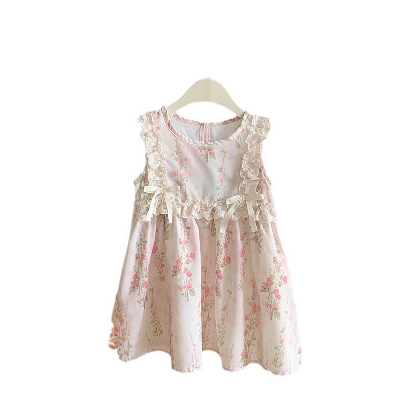 Baby Girl dress Summer 2024 New Sweet Fresh Style Floral Fly Sleeve Girl Princess Cake Dress Trendy