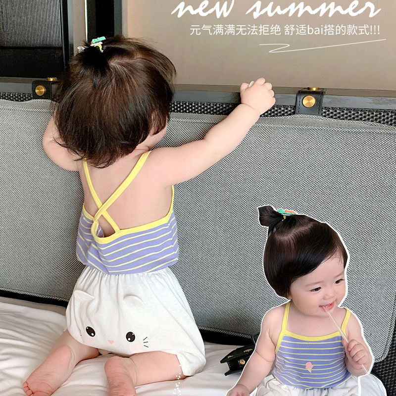 | nameOriginal | Baby Girl's Cartoon Top with Sling for Children Pure Cotton Base Summer Baby's Vest Thin Outer Wear T-Shirt |