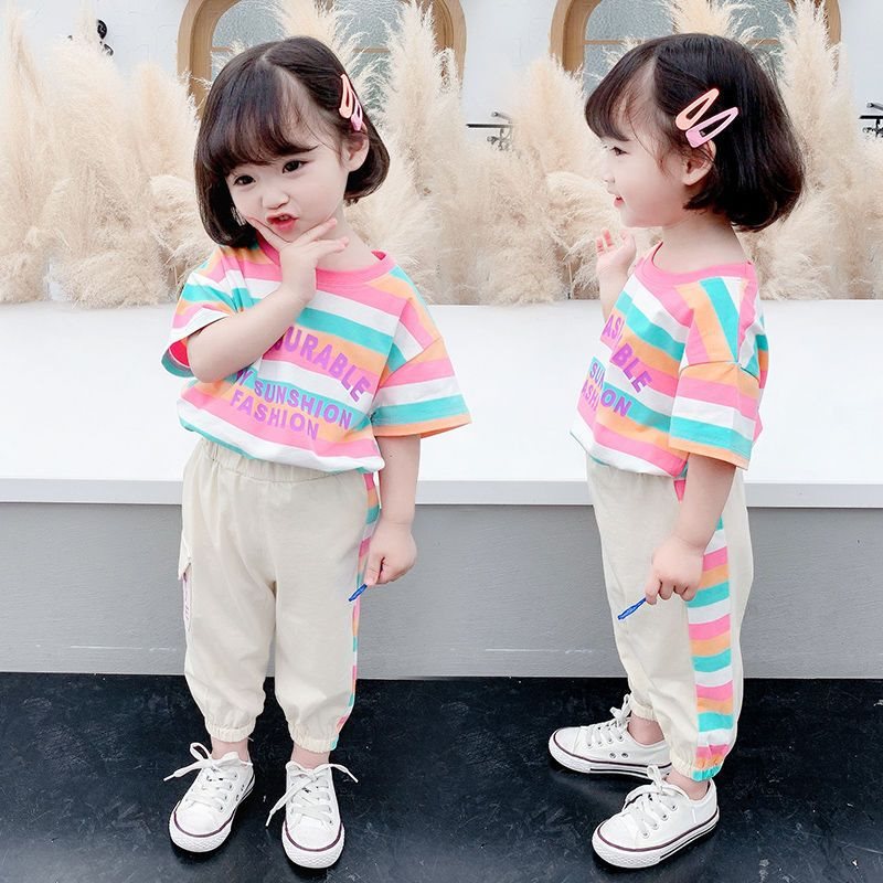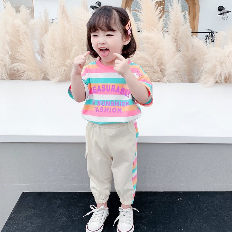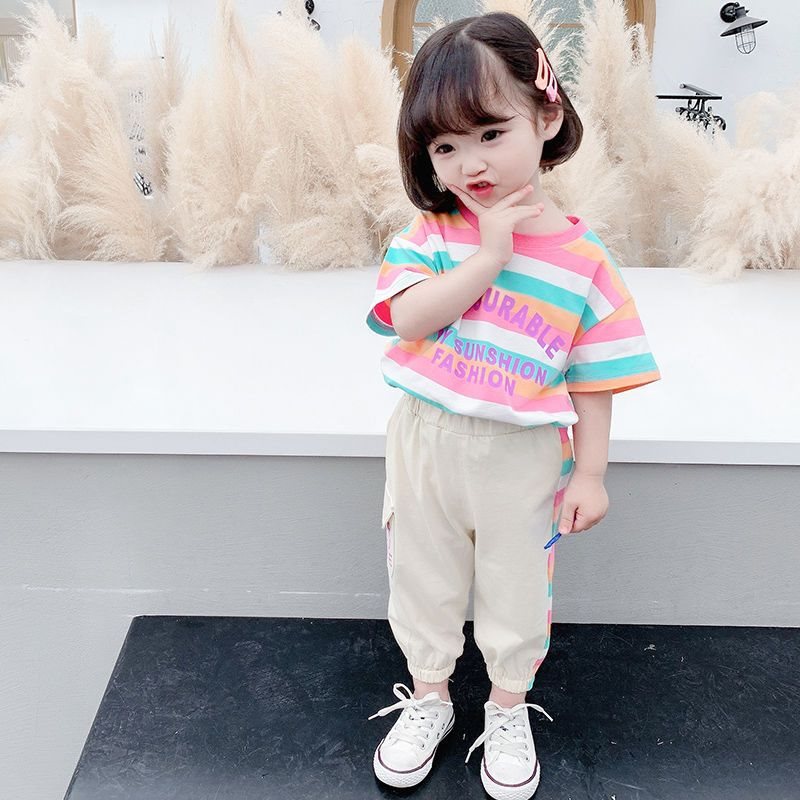 | nameOriginal | Baby Girl's Summer Clothes Girls' suit 2022 New Korean Style Children's Clothes Striped Stylike Short-sleeved Two-piece Children's Clothes |