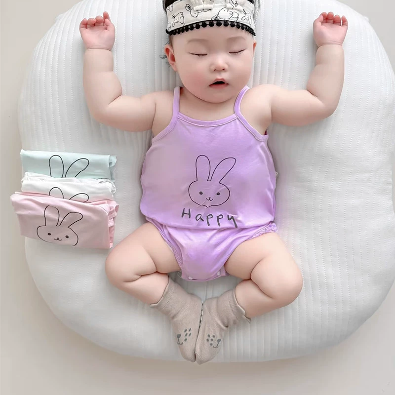 | nameOriginal | Baby girl's summer thin baby clothes modal boneless sleeveless sling triangle coveralls jumpsuit |