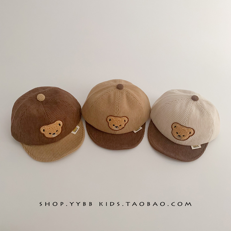 Baby Hat Autumn and Winter Korean Boys' Cute Bear Corduroy Warm Cap Girls' Soft Brim Baseball Cap
