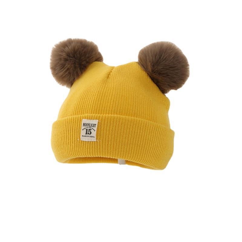 Baby Hat Autumn and Winter Newborn Double Ball Thickened Warm Wool Hat Children’s Pullover Cloth Label Knitted Hat Wholesale