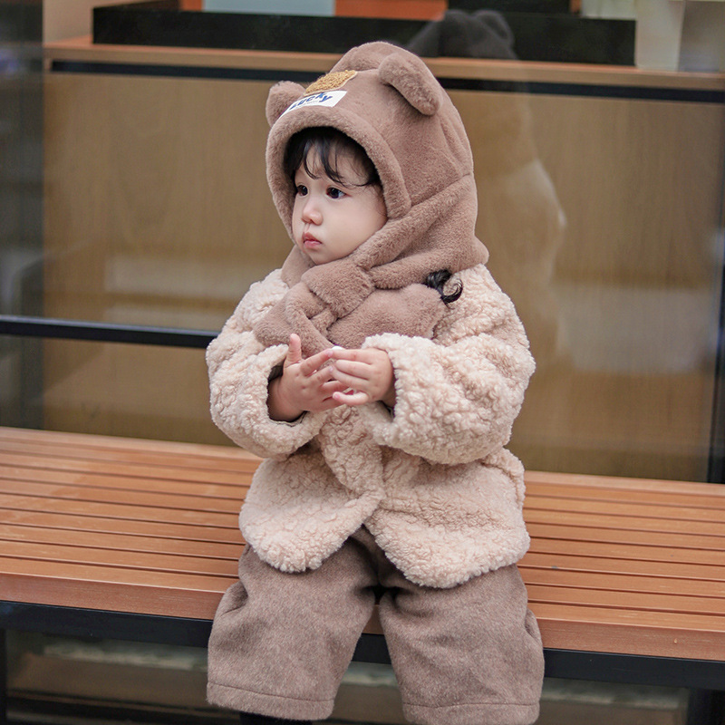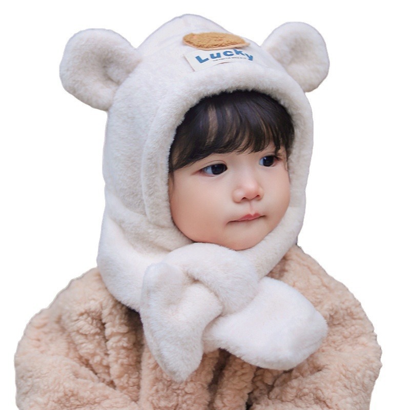 | nameOriginal | Baby hat scarf two-piece set autumn and winter cute bear baby earmuffs thickened warm boys and girls pullover hat |