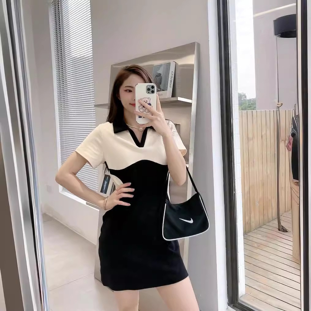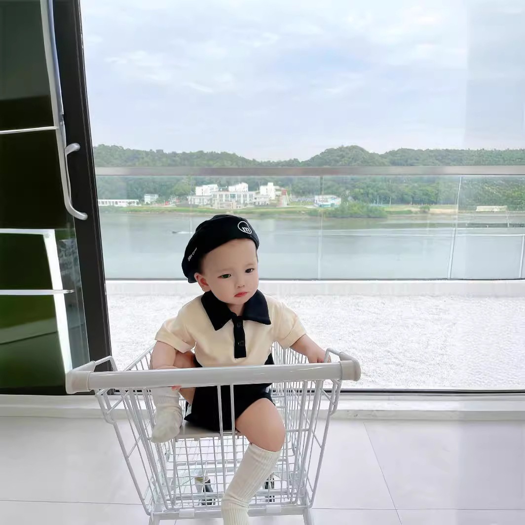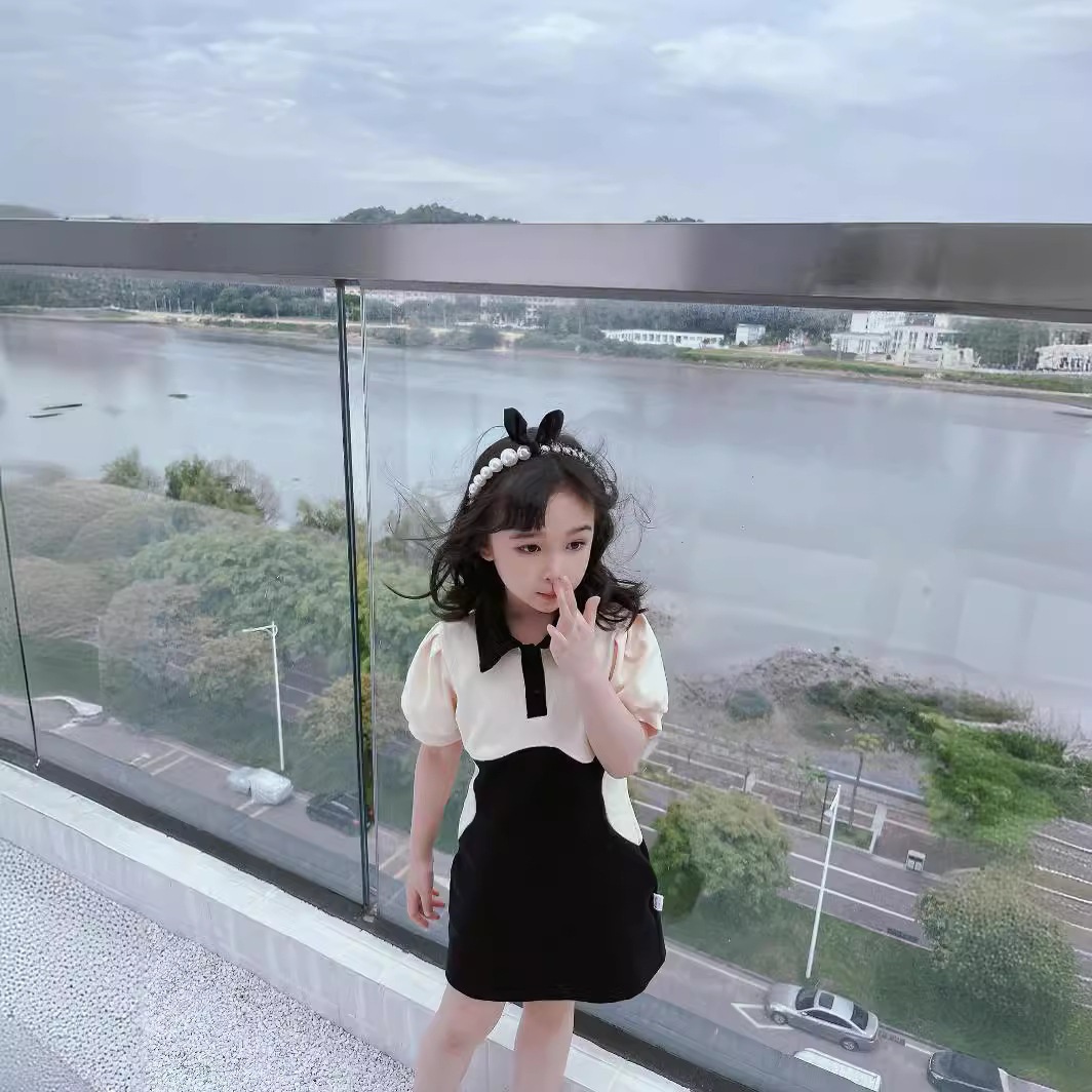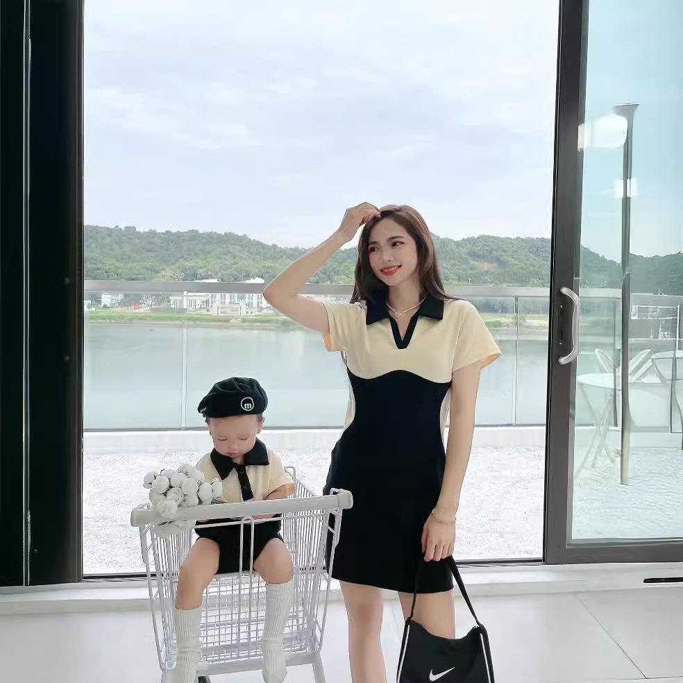 | nameOriginal | Baby in-laws summer a family of three mother and son short sleeve t-shirt mother and daughter black and white contrast color stitching polo shirt dress. |