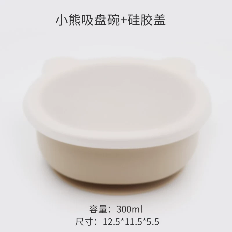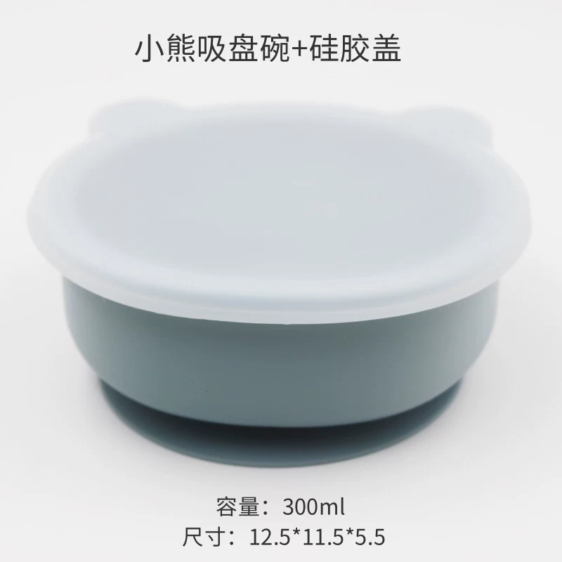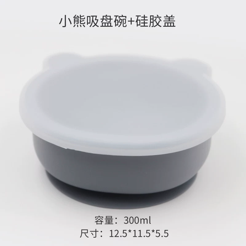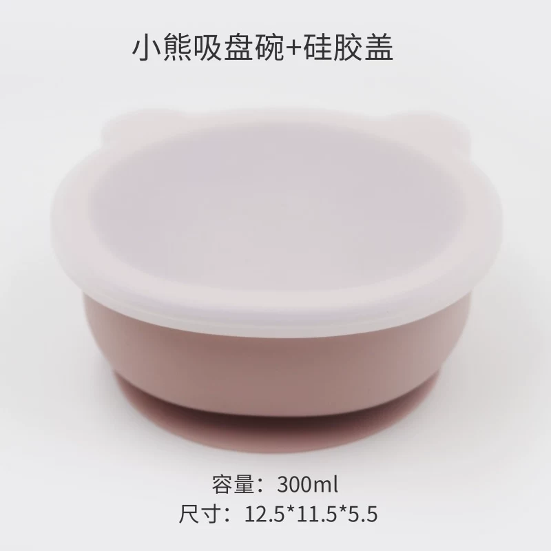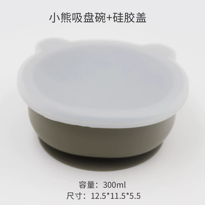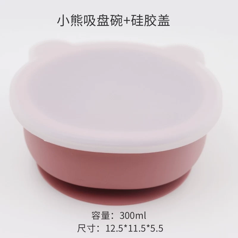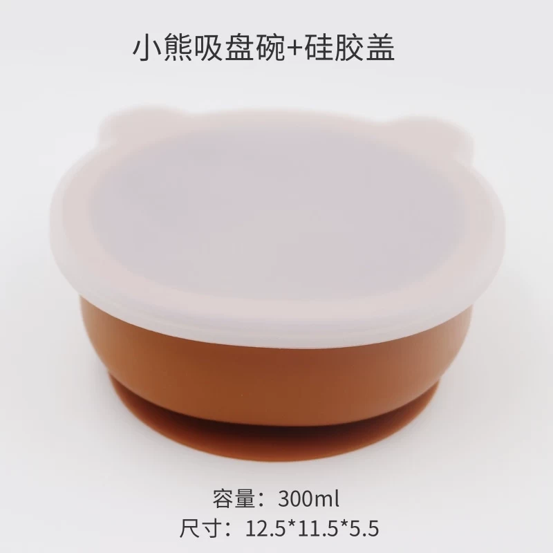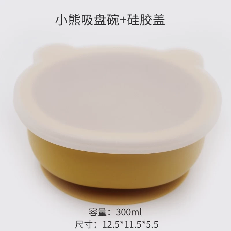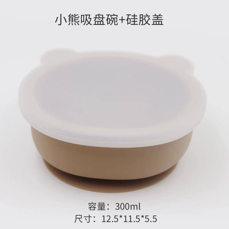 Baby integrated suction cup with silicone transparent cover children’s silicone cartoon cartoon bear tableware baby learning dinner bowl